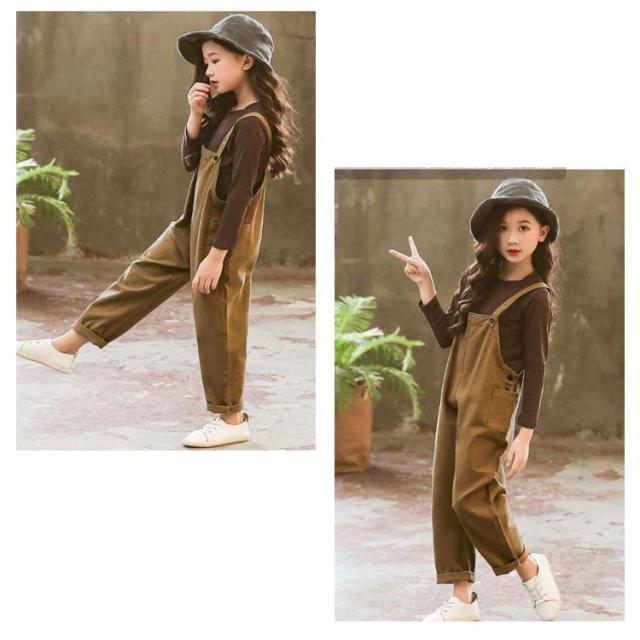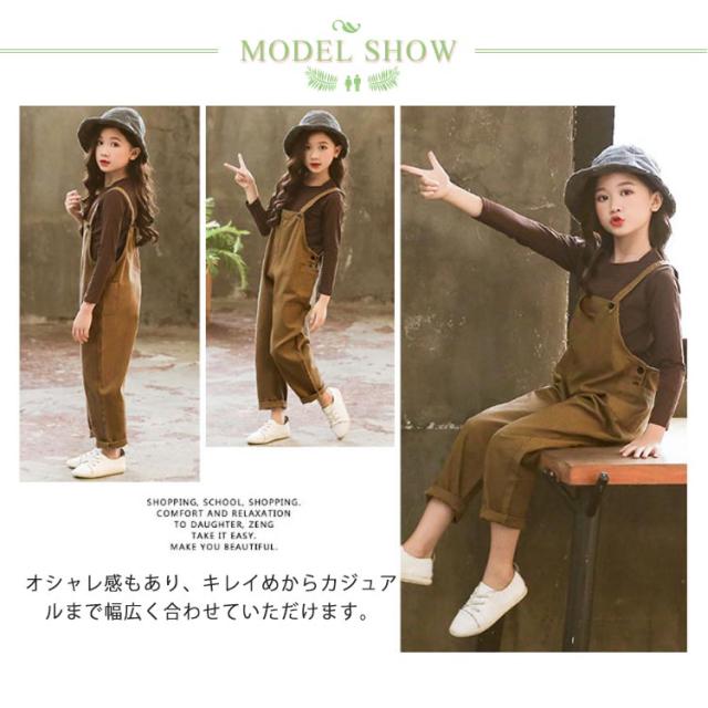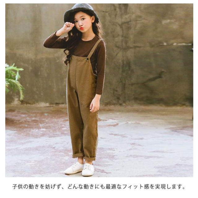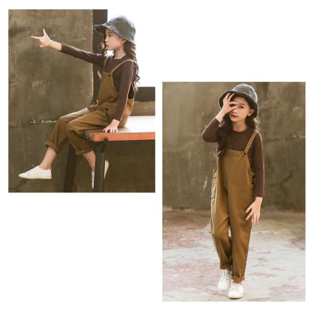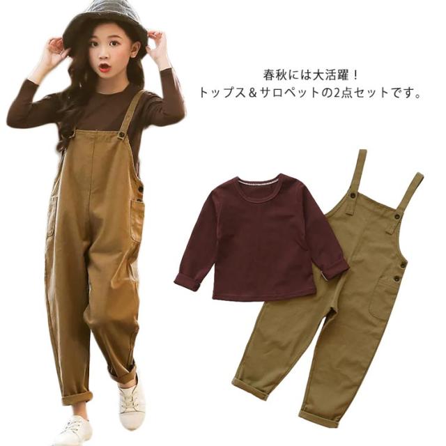 サロペット キッズ 子供服 女の子 オールインワン 上下セット オーバーオール 2点セット トップス 長袖 無地 ズボン ロングパンツ カジュアル 普段着 可愛い 春秋