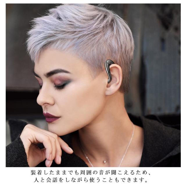 | 耳をふさがずに使用できる骨伝導イヤホン。 装着したままでも周囲の音が聞こえるため、人と会話をしながら使うこともできます。 防水機能を備えて、悪天候下での使用やスポーツシーンにも適しています。 Bluetooth5.0規格に対応していて、街中でもより安定した接続が可能です。 耳をふさがないので、インイヤーイヤホンに圧迫感を覚える方や、耳のサイズが気になる方でも快適に使用できます。 軽量タイプで長時間つけていても耳が疲れないです。 耳に掛けてしっかりフィットし、激しい運動する時も落ちにくい。 耳の近くから内耳に微細な振動を伝える骨伝導仕様で、イヤホンを耳道に入らず、高音の刺激から聴力を保護。 スポーツや通学・通勤・テレワーク・作業・テレワークなどに大活躍。 | |