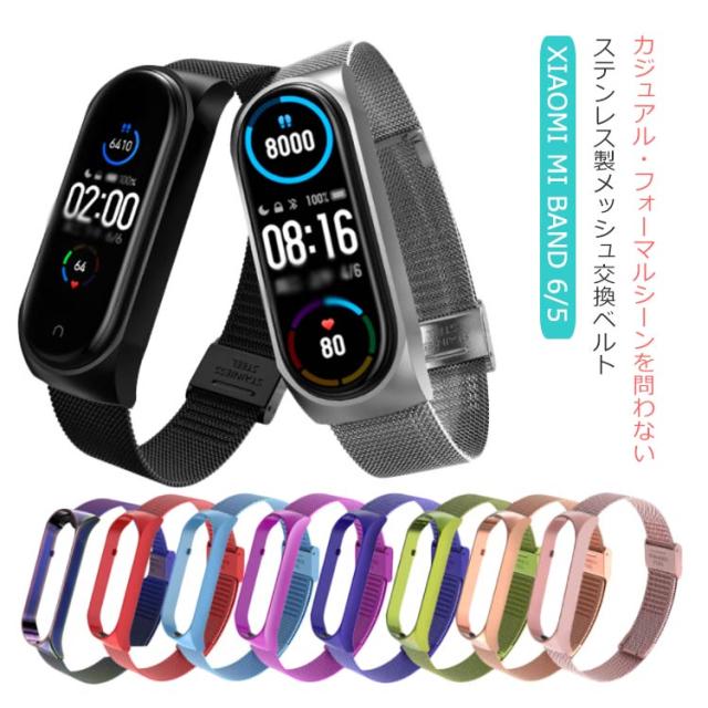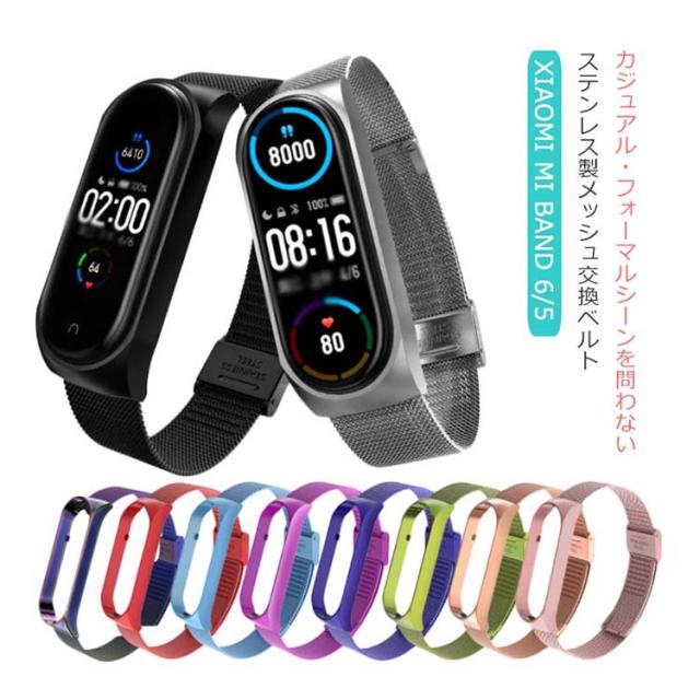 Xiaomi Mi band 6 ベルト ステンレス シャオミ スマートウォッチ Band 5 メッシュ 交換バンド 送料無料 通気 ビジネス お出かけ フォーマル