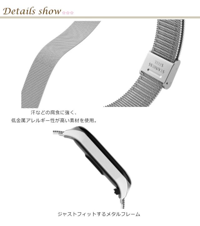 | シンプルながらシャオミスマートウォッチをより高級に飾る交換用ベルト。 華やかで高級感のある仕様で周りと差がつきます。 バックル付きで長さ調整が簡単、手首にしっかりフィットするのが嬉しい。 汗などの腐食に強く、低金属アレルギー性が高い素材を使用。 ベルト全体がメッシュ仕様で通気性抜群なので、長時間つけても快適心地よい。 日常、デート、ビジネス、結婚式などどのシーンにも対応できる人気スマートウォッチベルト。 | |