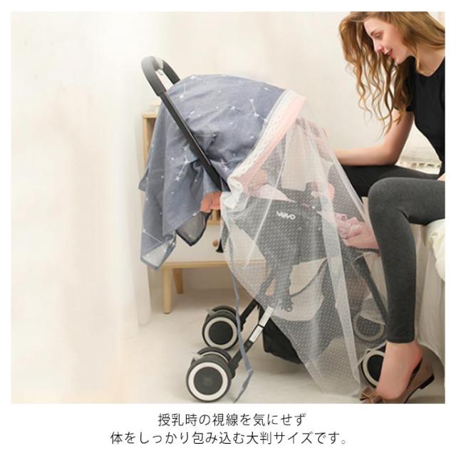 | 赤ちゃんの顔を見ながら授乳できて安心! ガーゼ付き二層タイプで乳母車用の蚊帳としても使用できます。 授乳時の視線を気にせず、体をしっかり包み込む大判サイズです。 ブランケットとしても使える。肌寒い日や、日差しが気になる日に掛けるだけ! 赤ちゃんの肌にやさしいコットン素材! 大判サイズなのに軽くて小さく鞄に収納できるのも嬉しいポイント。 | |