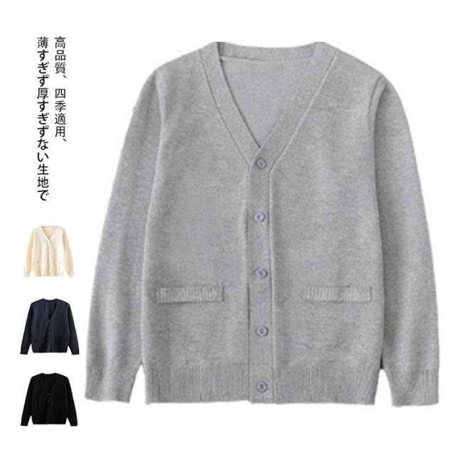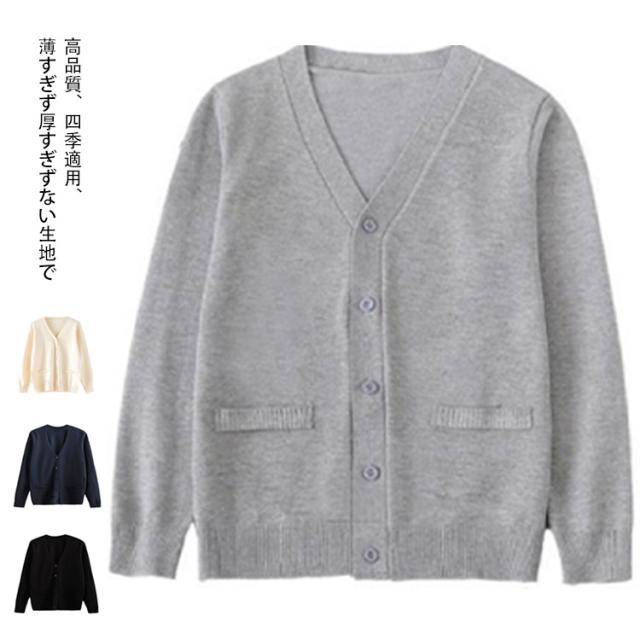 スクールカーディガン ニット 無地 vネック 春夏 秋 薄手 コットン 男子高生 女子高生 男女兼用 中学生 制服 学生服 ニットセーター ボタン 大きいサイズ 通学 グレー 紺 白