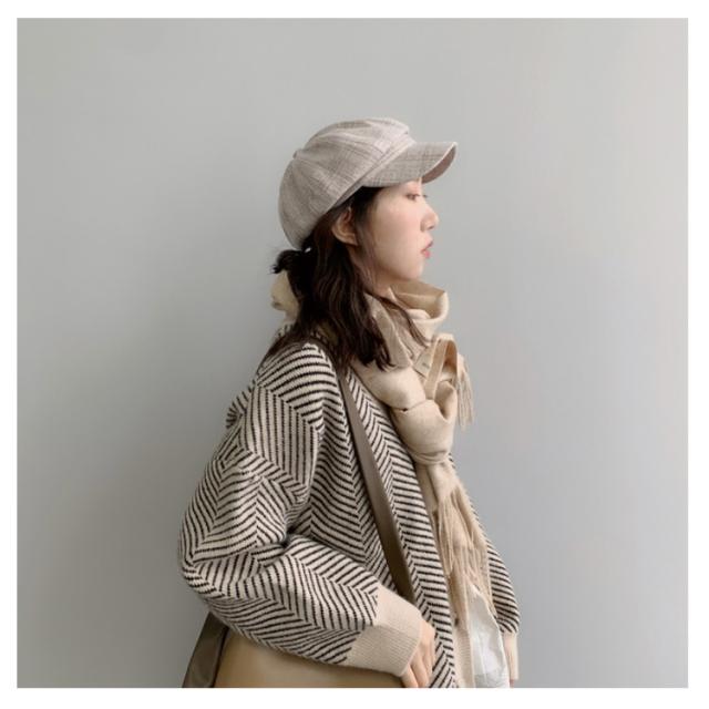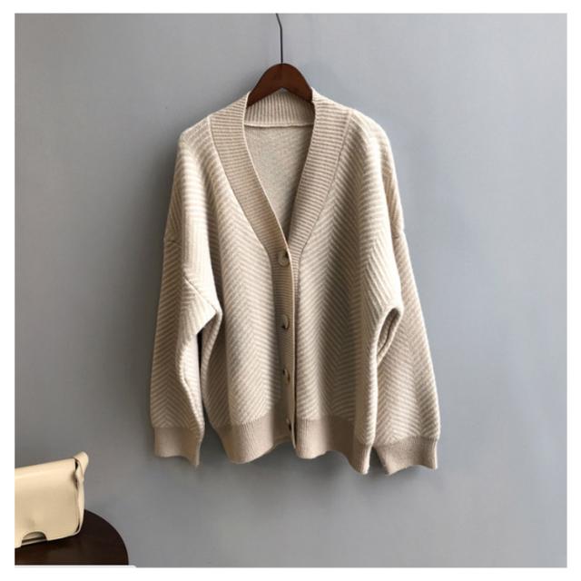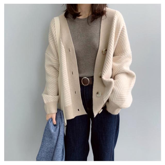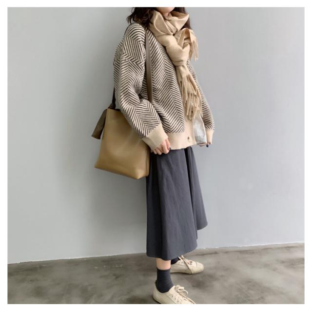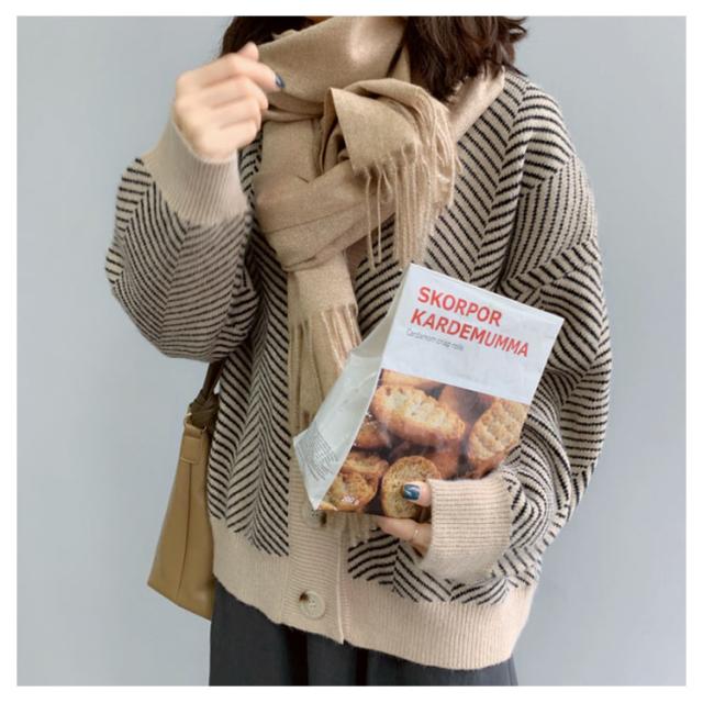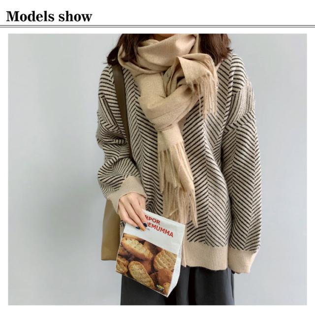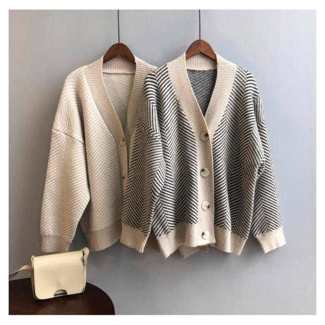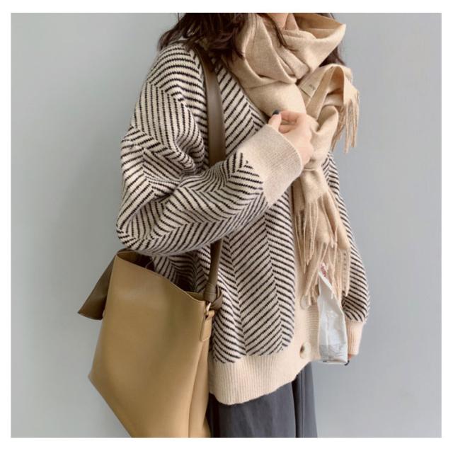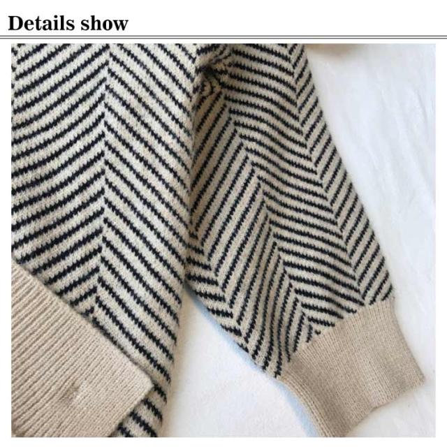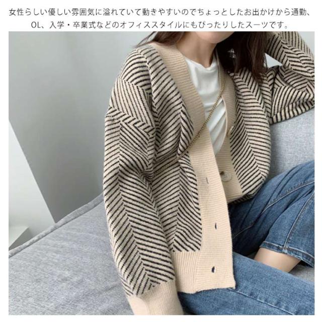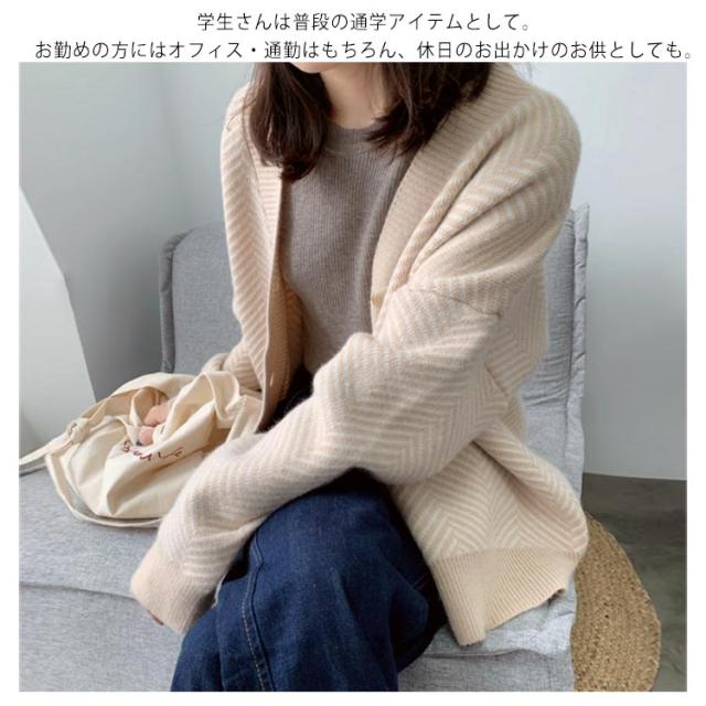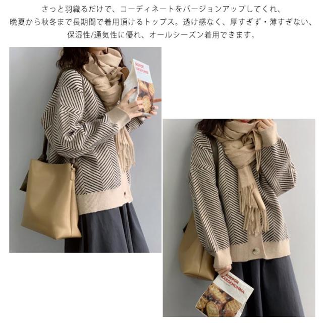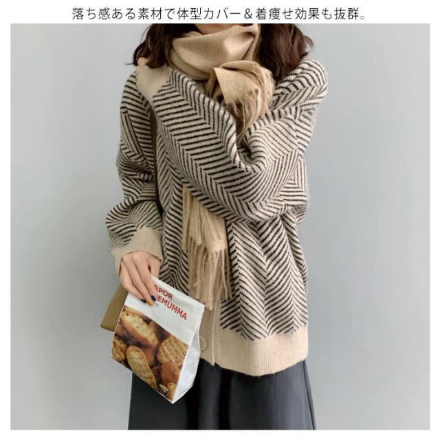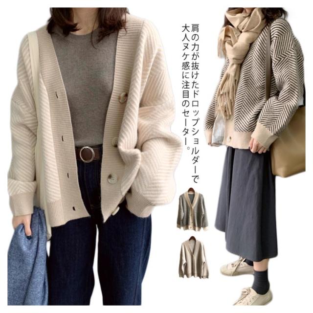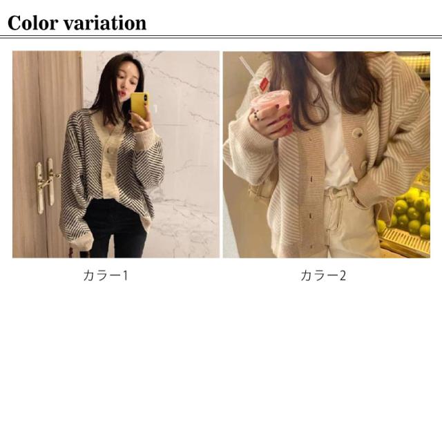ニットカーディガン レディース 春 秋冬 ゆったり ストライプ ロング ニット セーター プルオーバー 羽織り 厚手 vネック 大きいサイズ かわいい おしゃれ コーデ 袖ボリューム 長袖