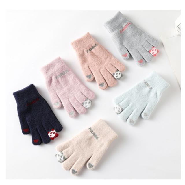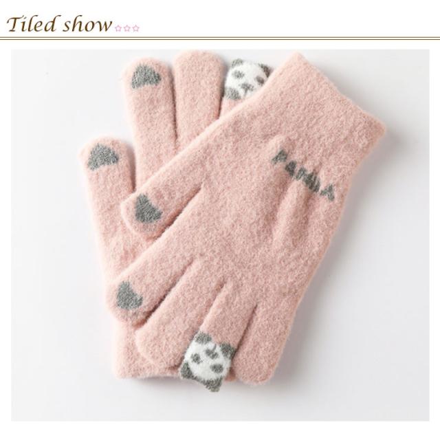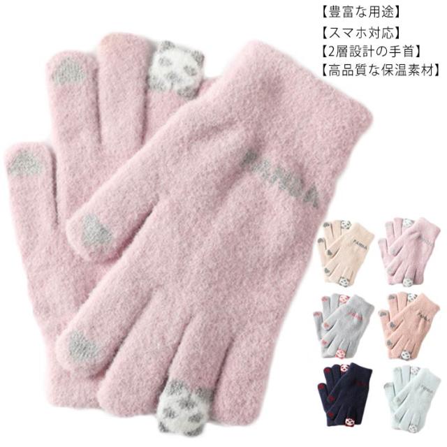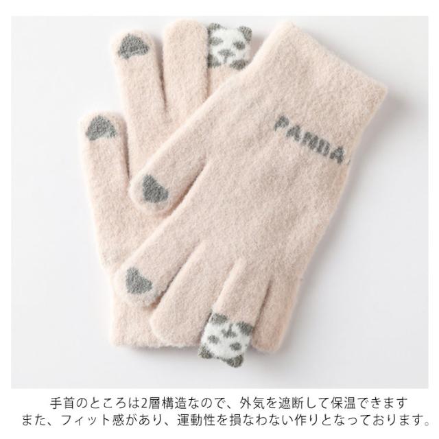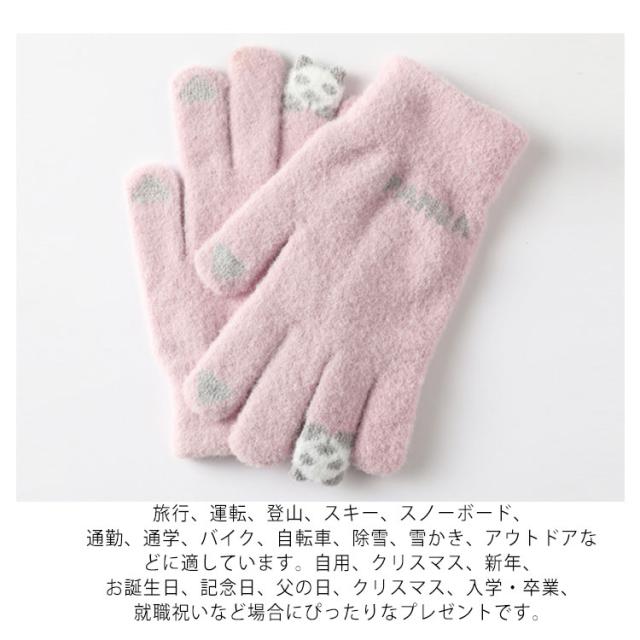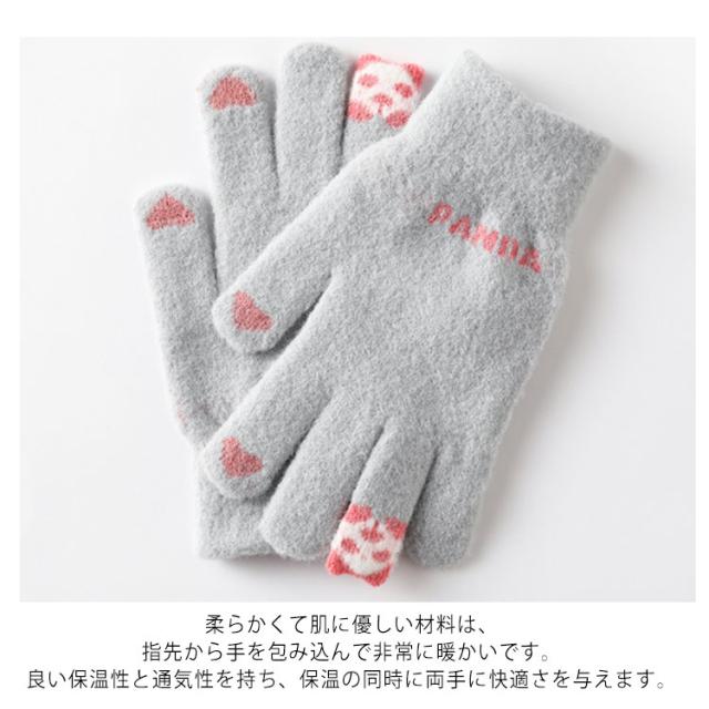 【スマホ対応】手袋 メンズ レディース 防寒 5本指 パンダ柄 送料無料 スマホ対応 スマートフォン対応 タッチパネル対応 手ぶくろ 可愛い 暖かい 手袋 秋冬 通勤 通学 運動