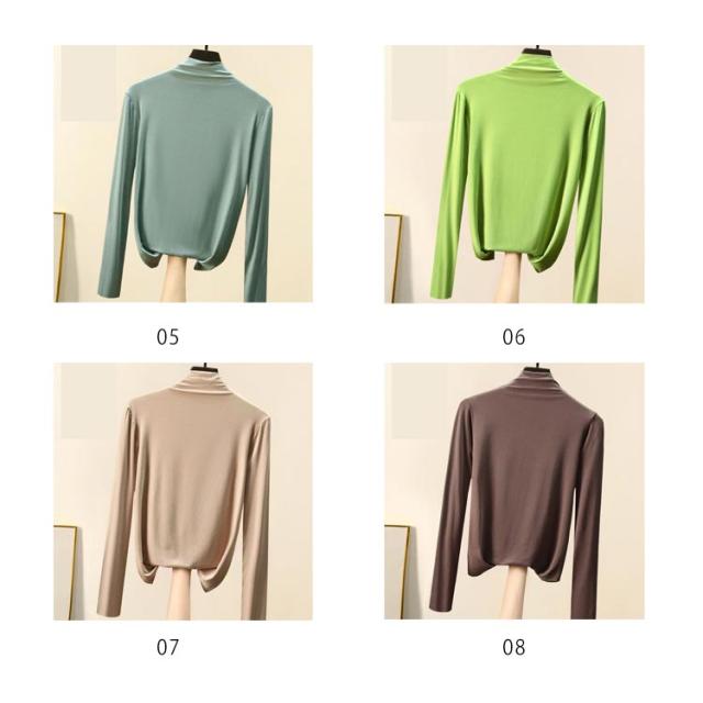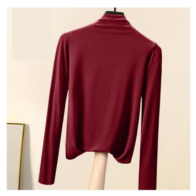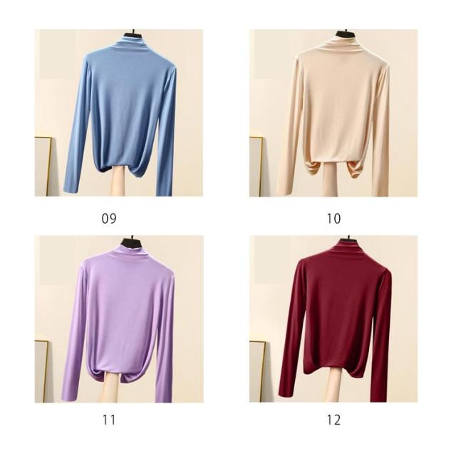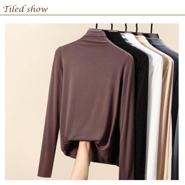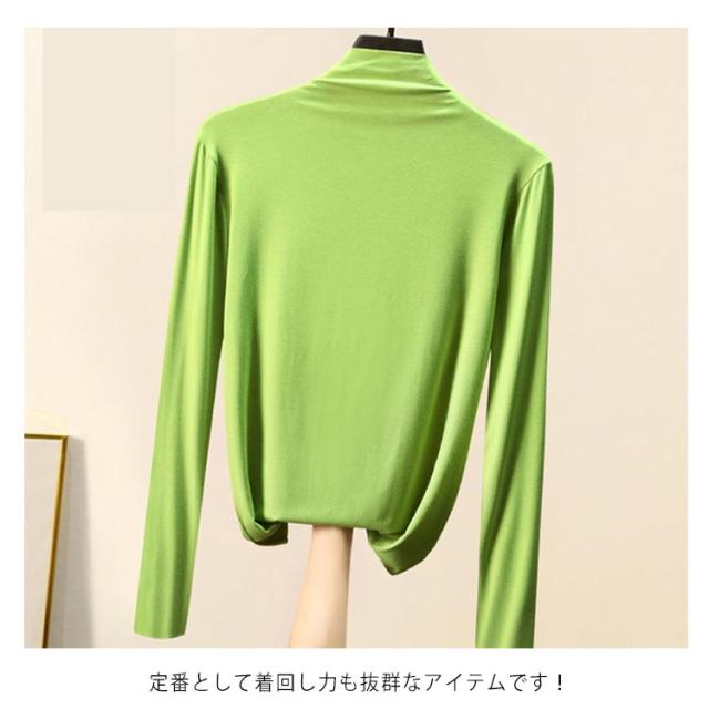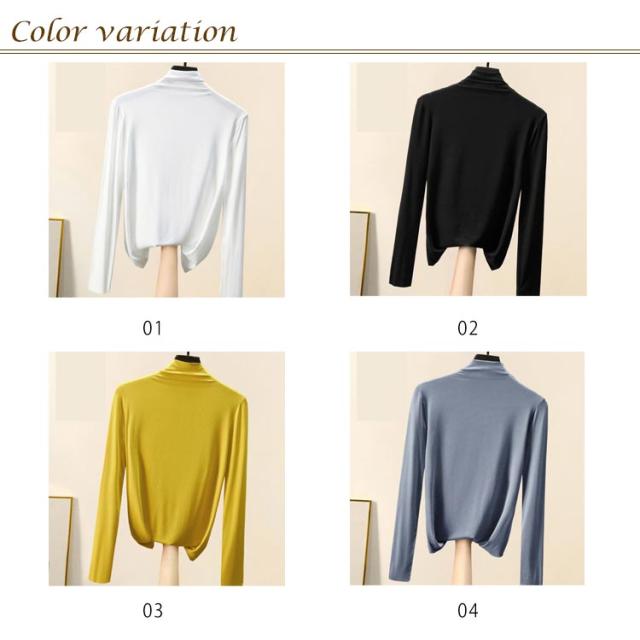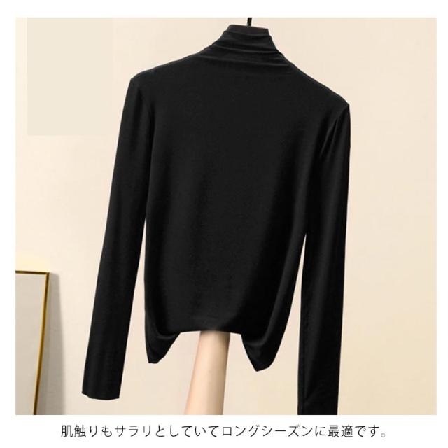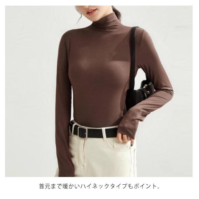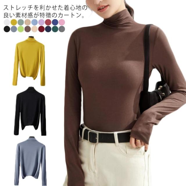カットソー レディース 長袖 ハイネック トップス ストレッチ 大きいサイズ 秋冬 ロンT 透けない 長袖tシャツ 無地 プルオーバー 大人 カジュアル インナーカートン レイヤード 着痩せ きれいめ 伸縮性 送料無料