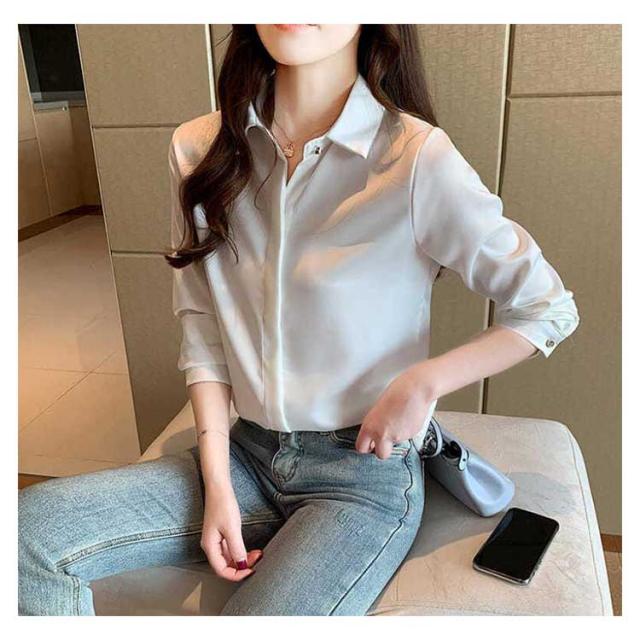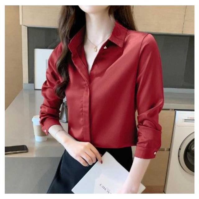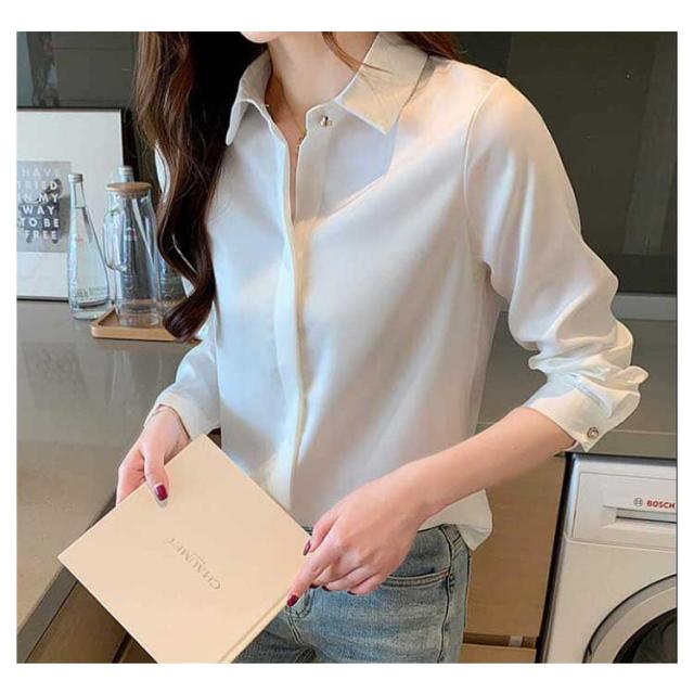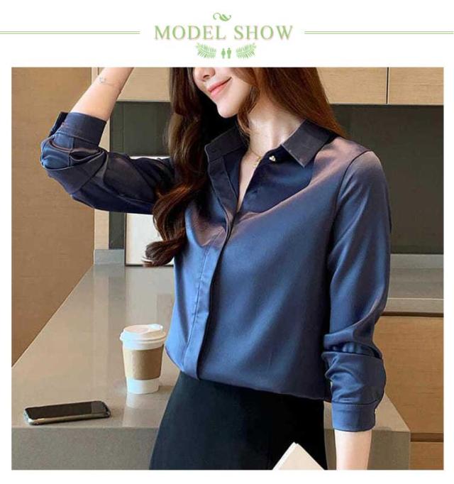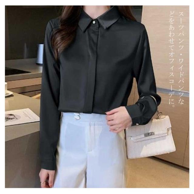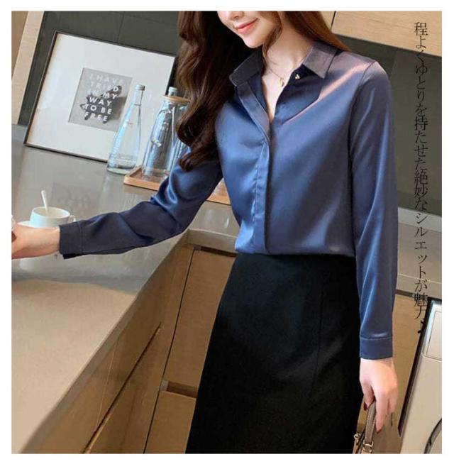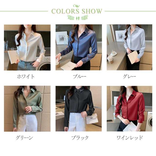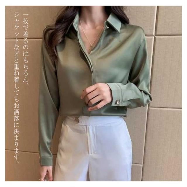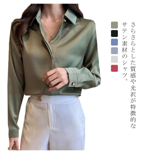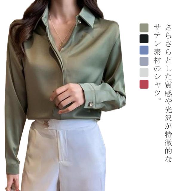 シャツ 長袖 サテンシャツ レディース 無地 ブラウス 春 夏 秋 光沢感 さらさら 華奢見せ 送料無料 カジュアル きれいめ おしゃれ シンプル 体型カバー 大きいサイズ インナー