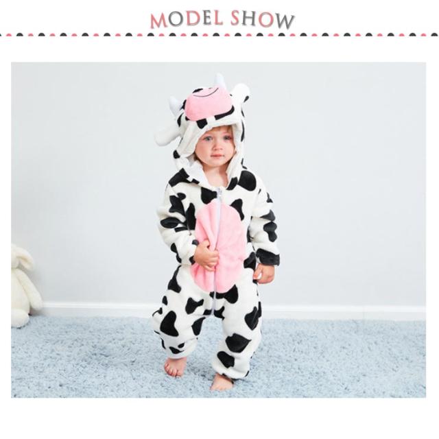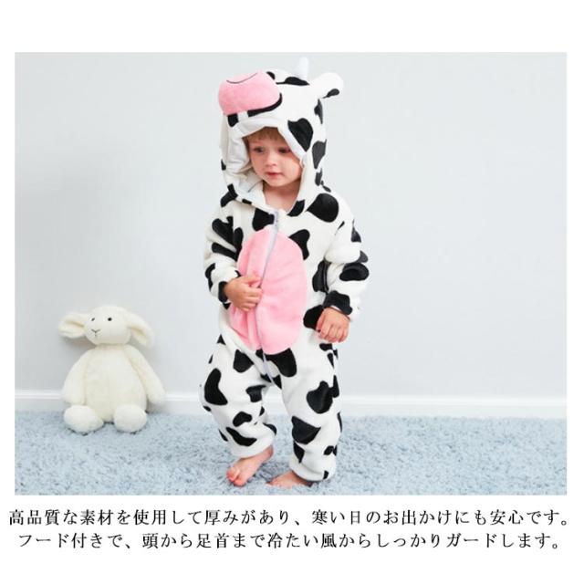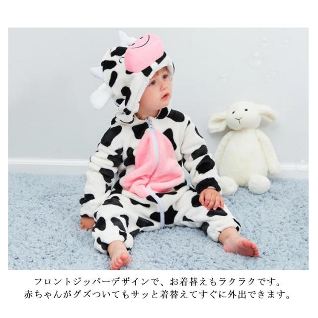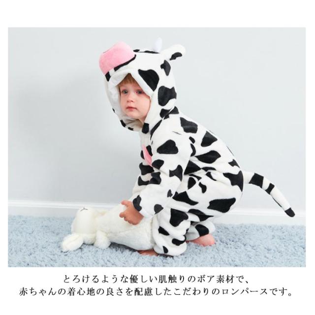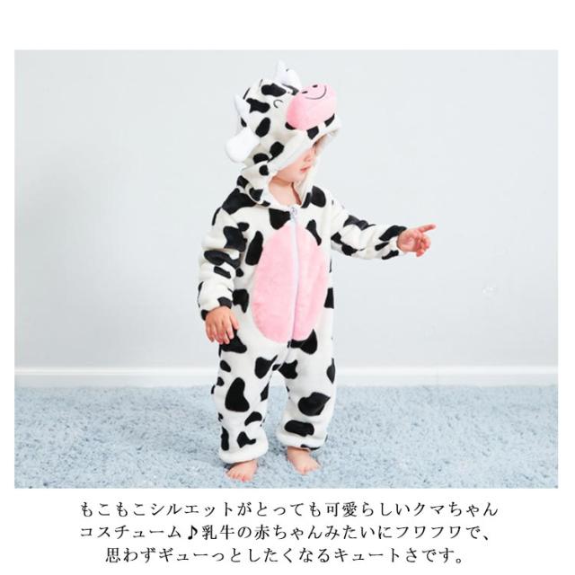 乳牛柄 着ぐるみ パジャマ 子供 ベビー 赤ちゃん カバーオール ジャンプスーツ ボア ロンパース もこもこ 秋冬 冬 あったか 男の子 女の子 ベビー服 ハロウィン 衣装 クマ 仮装 コスプレ 出産祝い もこもこ ふわふわ