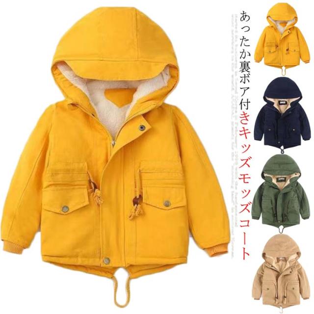 子供コート モッズコート キッズ 裏ボア コート ミリタリージャケット 子供 男の子 女の子 フード付き ボアジャケット ミディアム あったかボア 子供 アウター 防寒コート 冬服 冬物 カジュアル