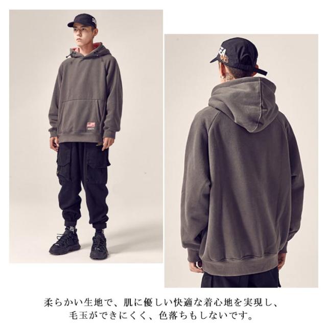 パーカー メンズ プルオーバーパーカー スウェット 長袖 ビッグシルエット フード付き 無地 トップス 秋冬 春 スポーツ 韓国ファッション ゆったり シンプル カジュアル 大きいサイズ おしゃれ