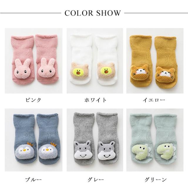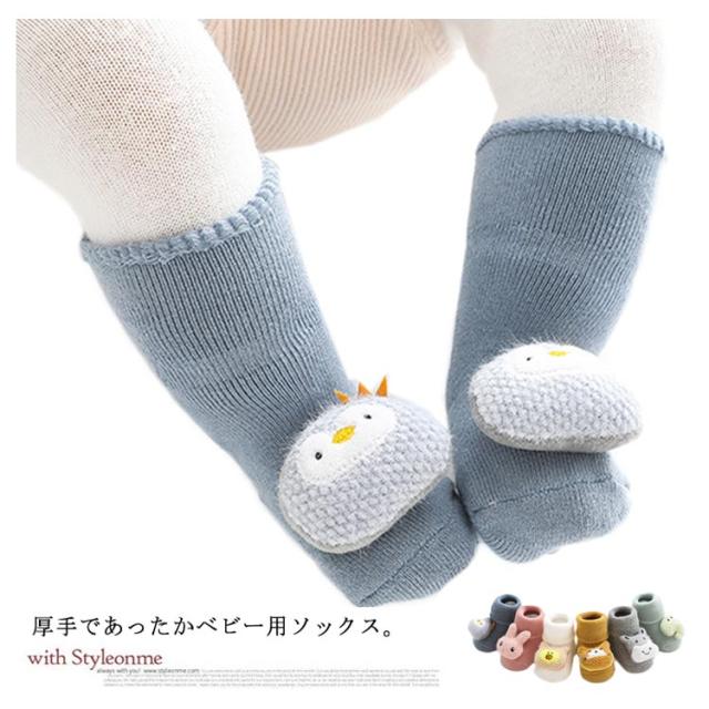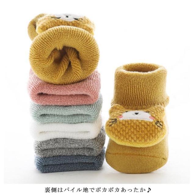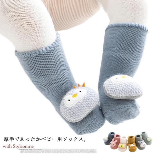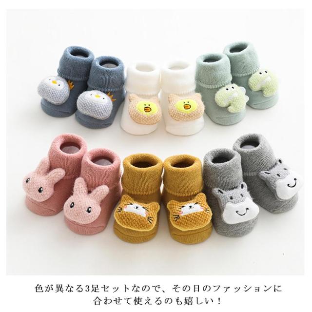 送料無料 ベビー ソックス 靴下 3足セット 赤ちゃん 厚手 裏パイル 保温 防寒 滑り止め アニマル 動物 熊 クマ 兎 ウサギ かわいい おしゃれ キッズソックス 子供ソックス 男の子 女の子 ルームソックス 出産祝い ギフト