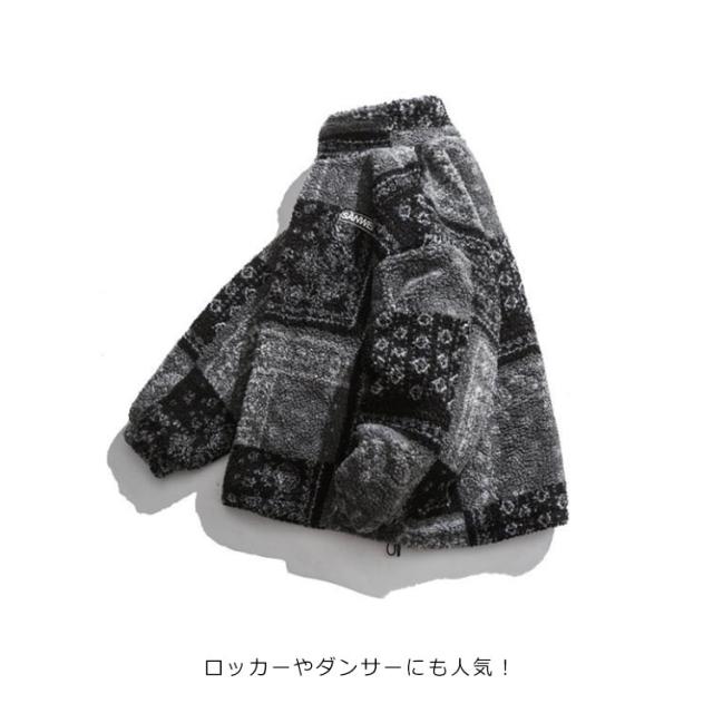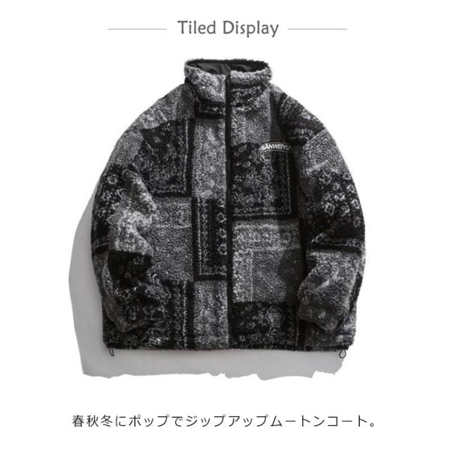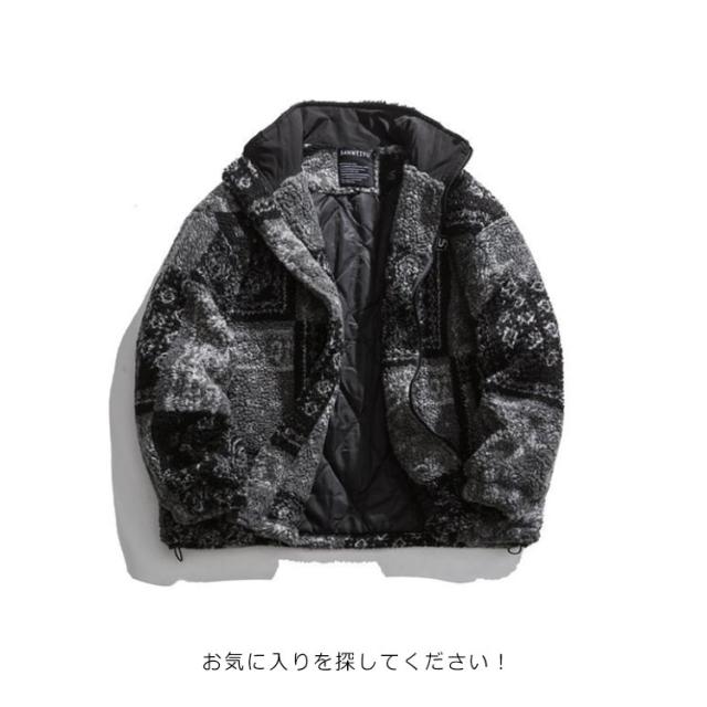 ムートンコート メンズ ペイズリー ジャケット 厚手 中綿 ムートン ジャケット ペイズリー柄 ブルゾン 防寒 防風 カジュアル 大きいサイズ 防風 ブラック 黒
