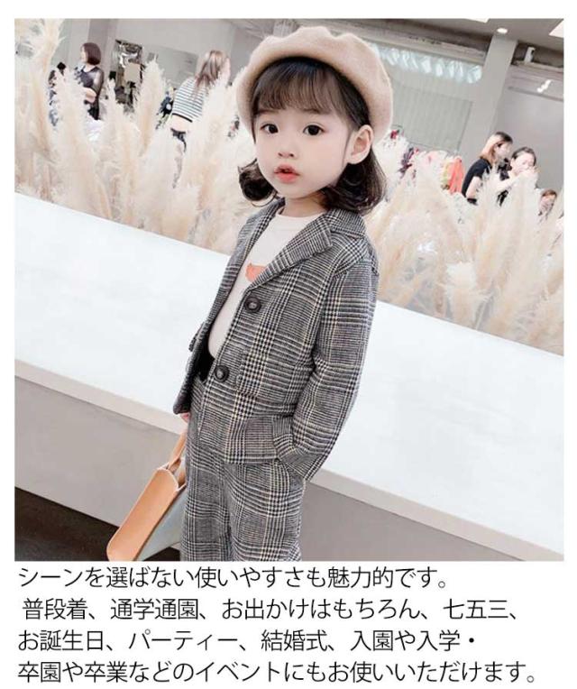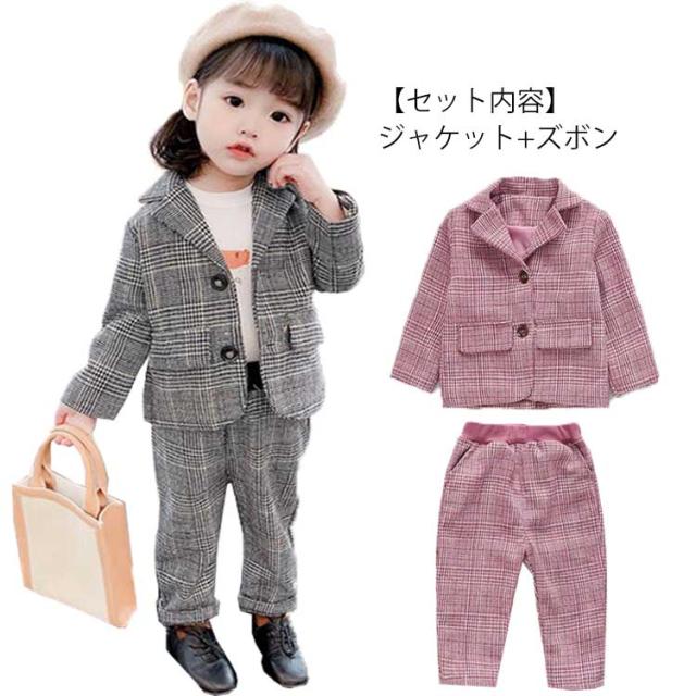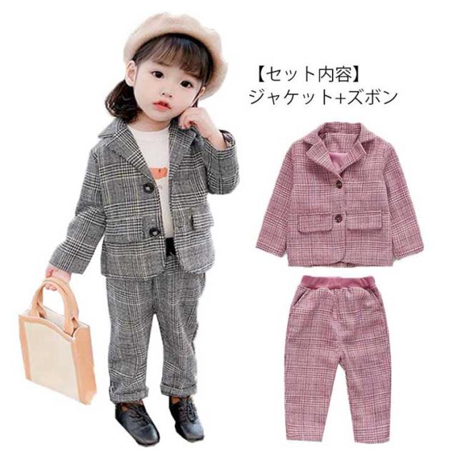 2点セット 子供服 女の子 スーツ 上下セット 日常 子供 フォーマル キッズスーツ チェック柄 ベビー フォーマルスーツ パンツスーツ ジャケット パンツ 七五三 セットアップ 入学式 ジュニア 卒園式 卒業式 入園式 フォーマル 結婚式 普段着 カジュアル 春秋 オシャレ