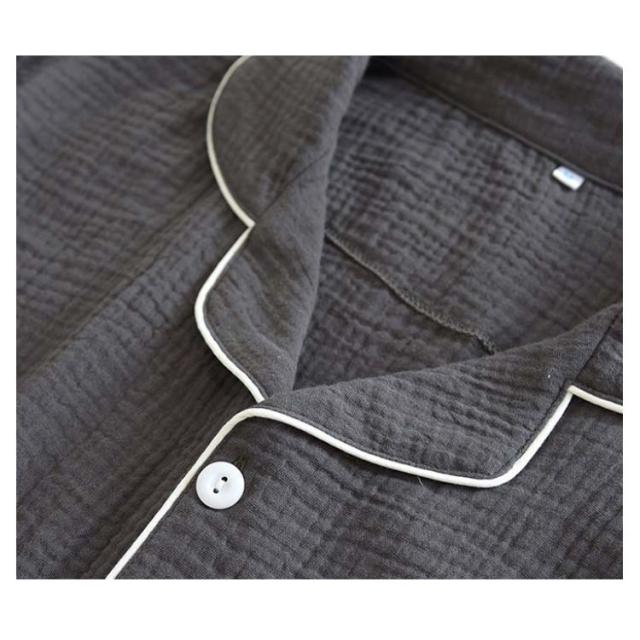 | かたちはなフルオープンタイプのシャツパジャマで、ほどよい厚みとやわらかさを持ったダブルガーゼを使ったパジャマ。 ダブルガーゼの膨らみと自然なシワ感が見た目にも肌にも心地よく、優しく体を包み込んでくれます。 ダブルガーゼは吸湿性・通気性に優れ、オールシーズン活躍してくれる優秀アイテム。お手入れも簡単で、洗うごとに柔らかな風合いになり身体になじんでくれます。 トップス、ボトムスいずれかを無地にすることで、パジャマ感を軽減し、宅配便だって堂々と取りに行けます! 大人っぽくシンプルなデザインなので、レディースとお揃いや、バレンタインデー・父の日・クリスマスなどのギフトにもおすすめ! | |