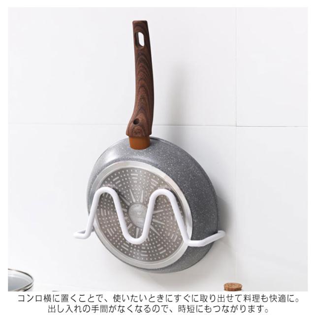 | 鍋蓋の置き場所問題 調理中、置き場所に困る鍋の蓋、調理台はまな板や食材が置いてあるしコン口周りは混雑しているし。 取り出しラクラク コンロ横に置くことで、使いたいときにすぐに取り出せて料理も快適に。出し入れの手間がなくなるので、時短にもつながります。 丈夫で安心 キズやサビに強い、粉体塗装加工が施された丈夫なスチ一ル製。汚れてもお手入れしやすく水まわりでも安心して、長く使えます。 | |