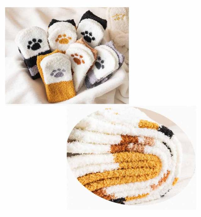 【6足セット】もこもこ ソックス レディース もこもこ 靴下 ボア モコモコ かわいい 猫足 ソックス セット 2種類 6足セット 23-25cm かわいい 可愛い くつ下 すべり止め 猫 ねこ ネコ 猫グッズ