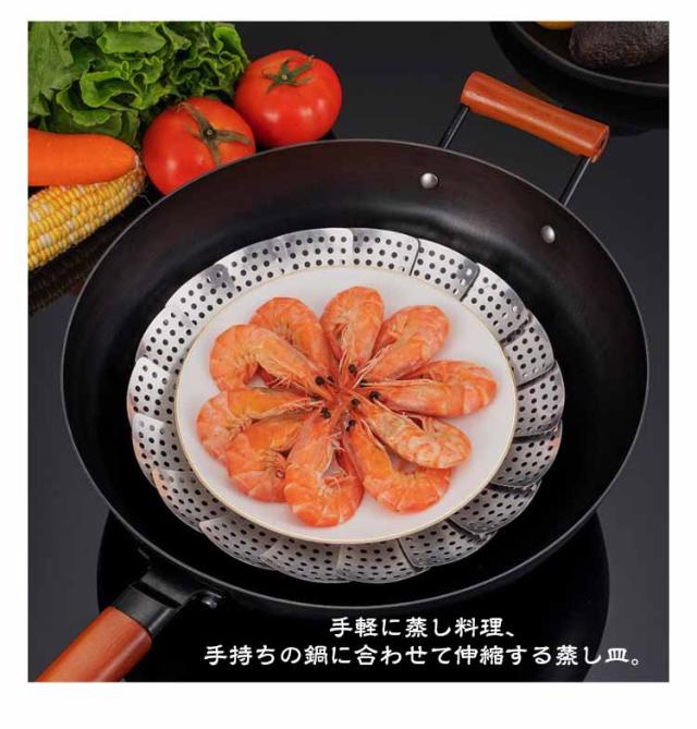 | 鍋のサイズに合わせて伸縮する便利なステンレス製蒸し目皿。 羽の開閉角度を自由に調節。一つの蒸し器で異なる鍋に対応。 手軽に蒸し料理、手持ちの鍋に合わせて伸縮する蒸し皿。 たくさんの小さな孔から均等により早く熱を通します。 酸にも強く丈夫で長持ち、清潔に使えるステンレス製。 茶碗蒸しや温野菜、ふかしイモ、中華まんなどに。 | |