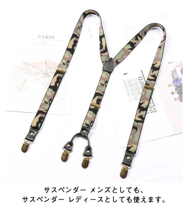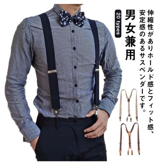 | 伸縮性がありホールド感とフィット感、安定感のあるサスペンダーです。 サスペンダーは高密度で、柔らかく、堅牢性に優れています。ベルトはゴムなので伸縮性も抜群で、調整が可能です。ゴム生地はアジャスターで細かなサイズ調節もできるので、サスペンダー メンズでのご利用は多いのですが男女問わずご使用いただけます。 ソフトな質感の合皮を使用! 背中はY型で前後2か所ずつ留めで、体型に合わせ安定してズボンを吊ること出来ます。 サスペンダー メンズとしても、サスペンダー レディースとしても使えます。 メンズ スーツのパンツに使ったり、 ミニスカートにも使えます。 いろいろなお色を選んでいただけるのでビジネスにも、フォーマルにも、旅行、カジュアルに使えます。 | |