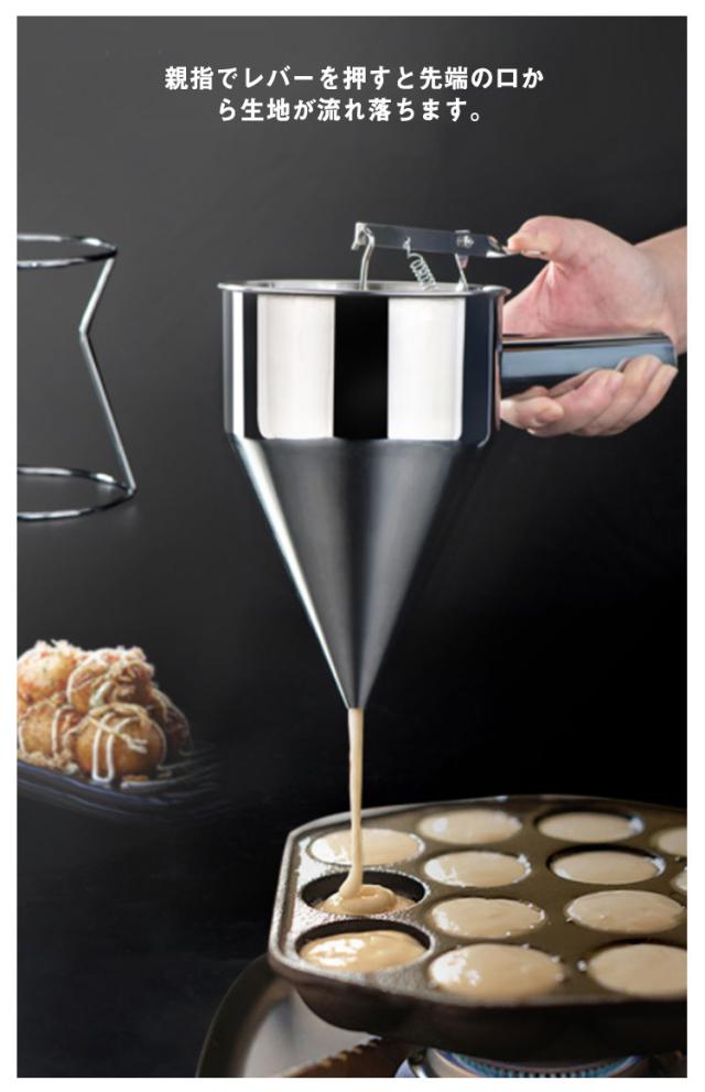 スタンド付 鯛焼き 1200ML たい焼き ステンレス製 粉つぎ チャッキリ 種落とし 家庭用 種落とし 今川焼き 大判焼き 鉄板焼き 洋菓子 ちゃっきり 漏斗 業務用 たこ焼き