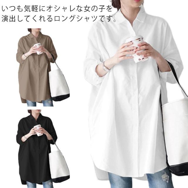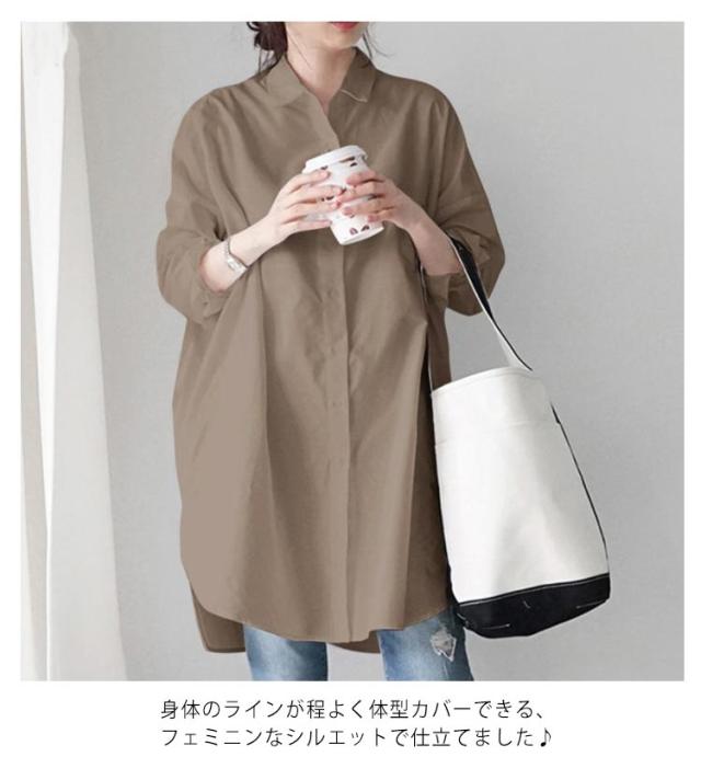 ゆったり ロングシャツ レディース 長袖 お洒落 無地 ブラウス トップス チュニック 体型カバー カジュアル キレイめ 春秋物 羽織り 普段着 シャツワンピース