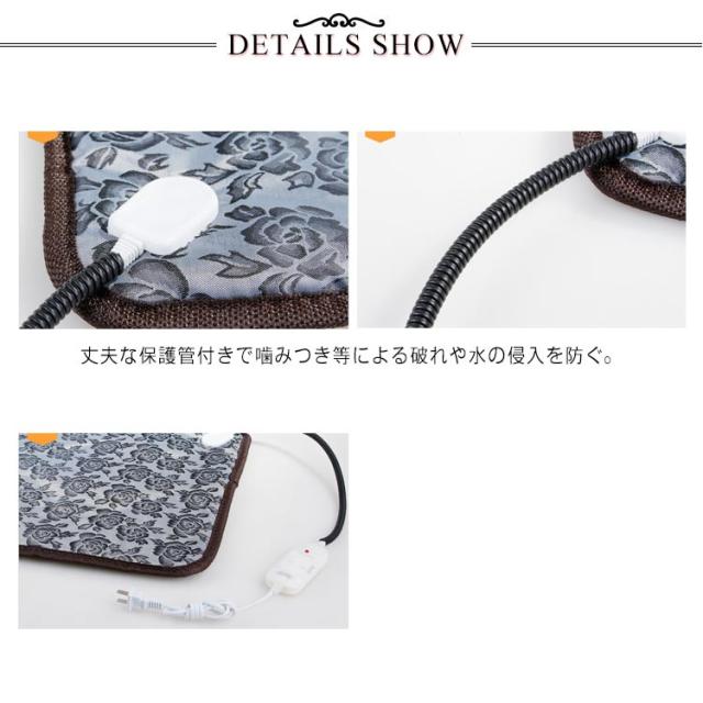 | ペット用防水ホットカーペット。 2段階温度調節!低温モード30℃、高温モード50℃。 丈夫な保護管付きで噛みつき等による破れや水の侵入を防ぐ。 IPX4級の防水性能でペットのおしっこも防ぎます。 大切なペットの安全を守るため、ペキュートホットカーペットには過電圧保護・過熱保護回路付きます。 【適応種(目安)】トイプードル、チワワ、ミニチュアダックス、猫等 | |