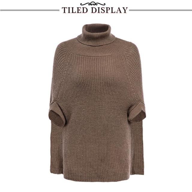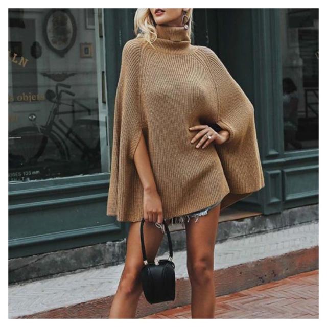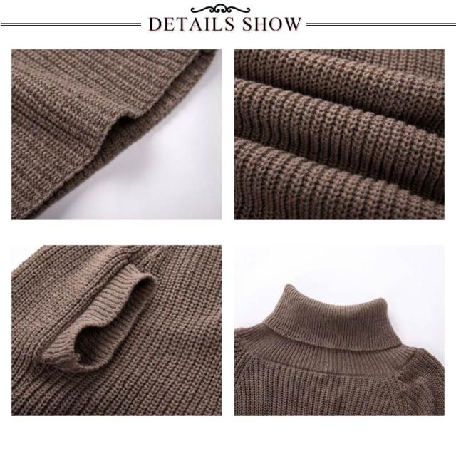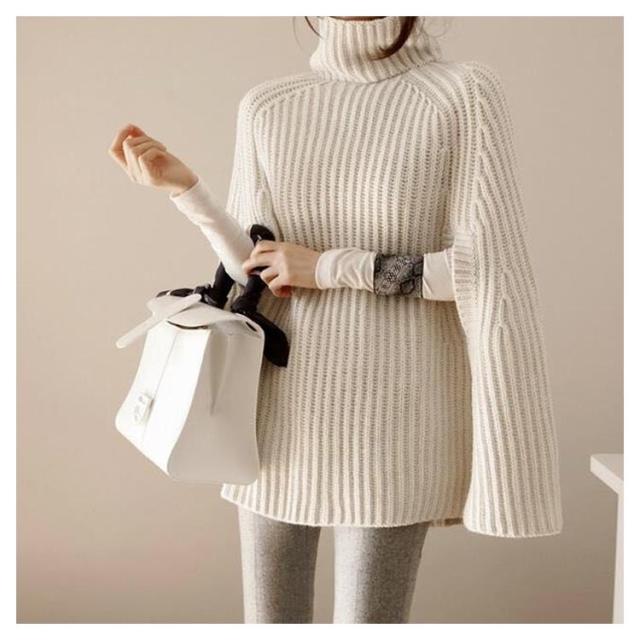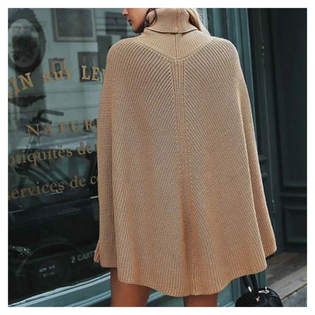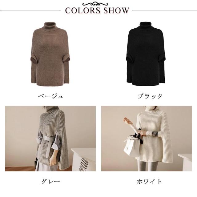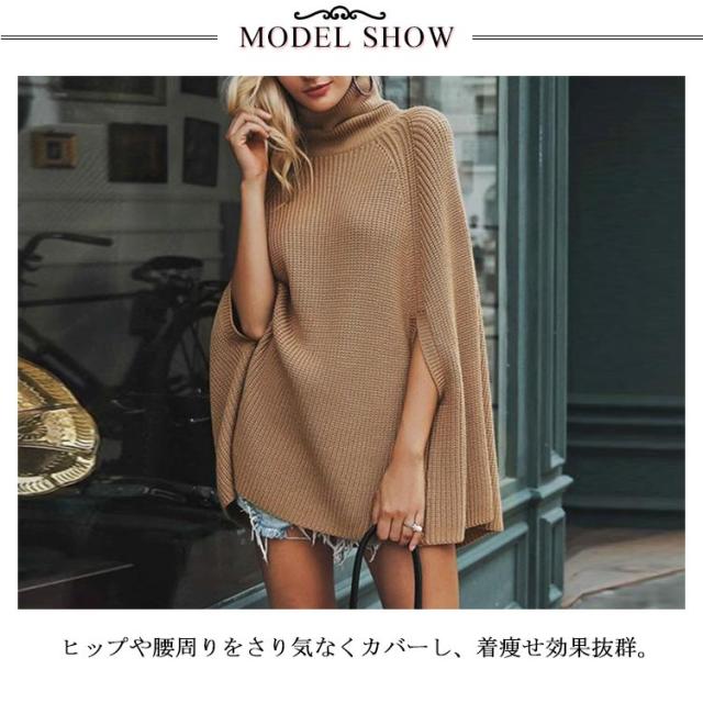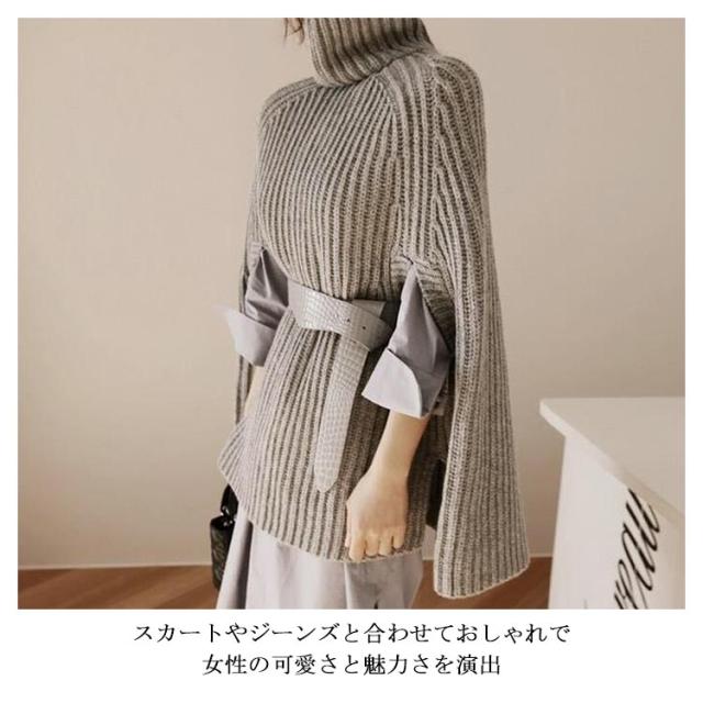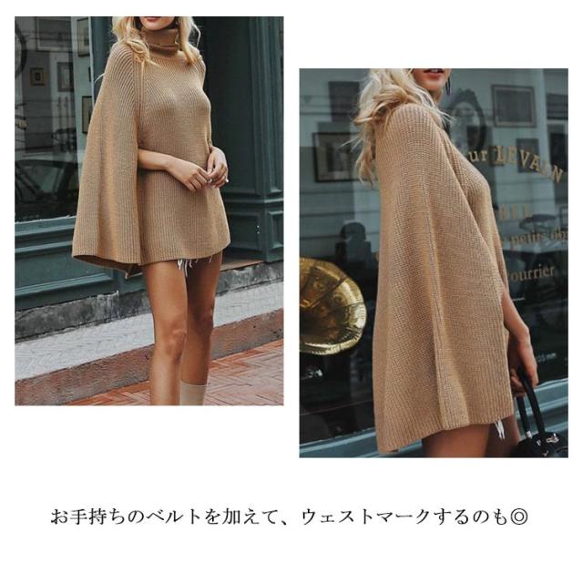 ニットポンチョ ゆったり トップス ハイネック ニット 秋冬 チュニックニット ポンチョ マント レディース タートルネック ブラック ベージュ ホワイト おしゃれ