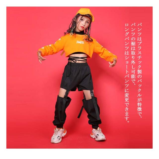 | 裾が取り外せるのロングパンツは個性的なダンスウェア。【トップス+スポーツブラ+パンツ】の3点セット! パンツはプラスチック製のバックルが特徴で、パンツの裾は取り外し可能で、ロングパンツはショートパンツに変更できます。 トップスはへそを露出するファッションで自然とスタイルがよく見えるデザインになっています。 綿とポリエステルを使用、通気性に優れた素材で、体をドライで快適に保ちます。ポリエステル素材を使用しているので動きやすく締付もなく、洗濯後も速く乾きになり、着替えに便利。 適用シーン:普段着、スポーツウエア、ステージ衣装、団体服、演出服、運動会、練習着など、誕生日、子供の日にお子様へのプレゼントにも適用します。 | |