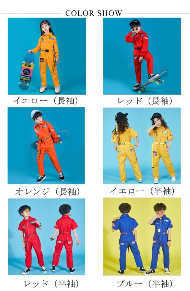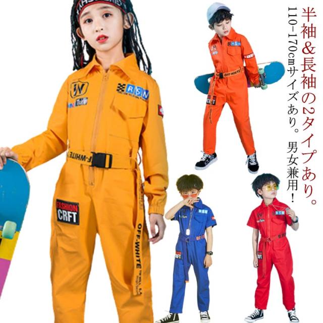 ヒップホップ ジャズ hiphop オールインワン セットアップ 長袖 半袖 つなぎ服 キッズ ダンス キッズ セットアップ 衣装 カーゴパンツ ミリタリー つなぎ服 ダンス衣装 ダンスウェア 半袖ツナギ 女の子 男の子 子供
