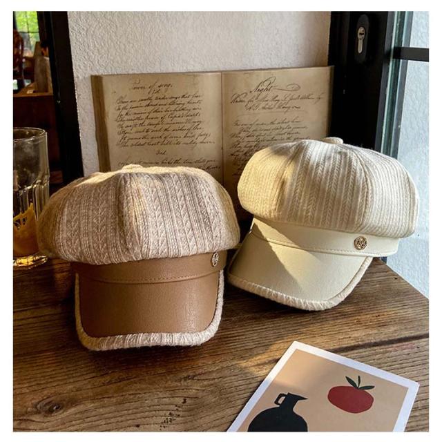 レディース キャスケット 帽子 PUレザー 秋冬 おしゃれ 小顔効果 ファッション 56-58cm 可愛い 暖かい 防寒 お出かけ アウトドア uvカット 日除け 春 つば広 自転車 ヴィンテージ風 送料無料