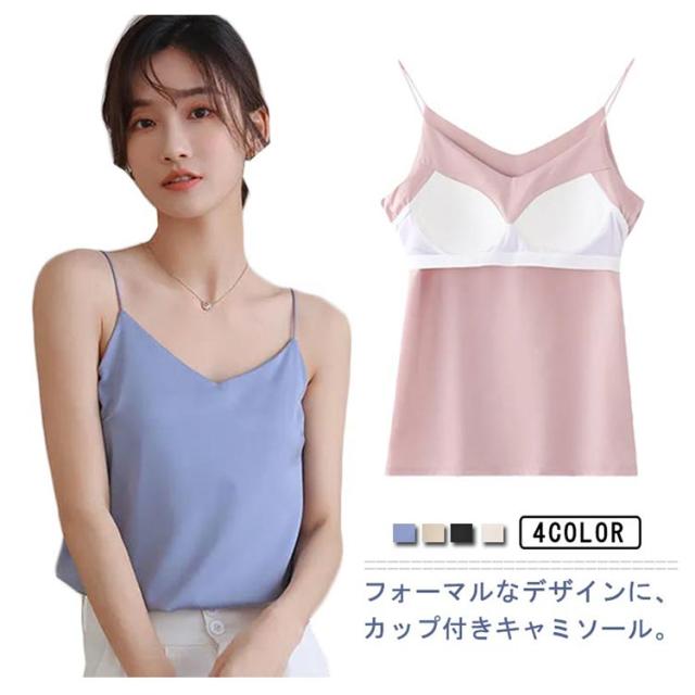 スーツのインナーとして最適!キャミソール シンプル インナー ノースリーブ カップ付き 大人カジュアル 春 XL レディース 夏 シンプル Vネック 定番 着回し トップス ブラトップ おしゃれ 通勤 フォーマル S M L ノンワイヤー