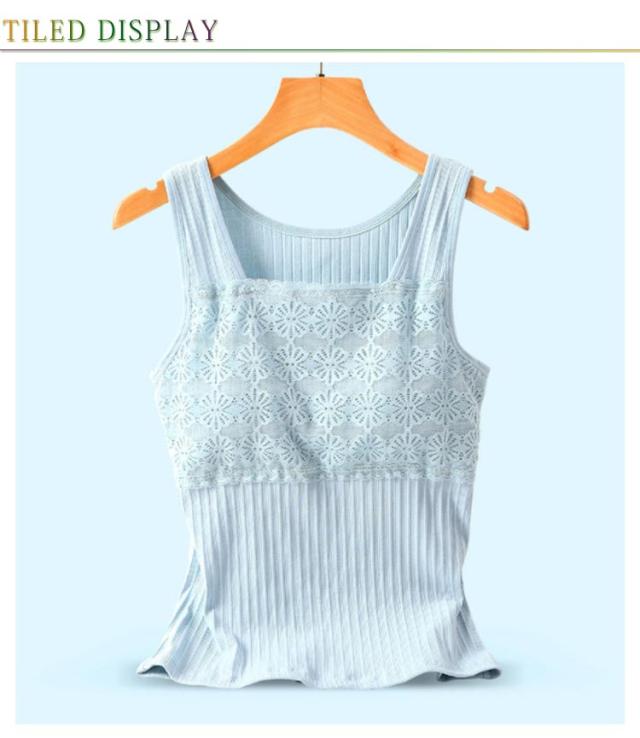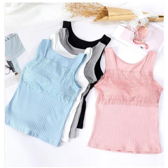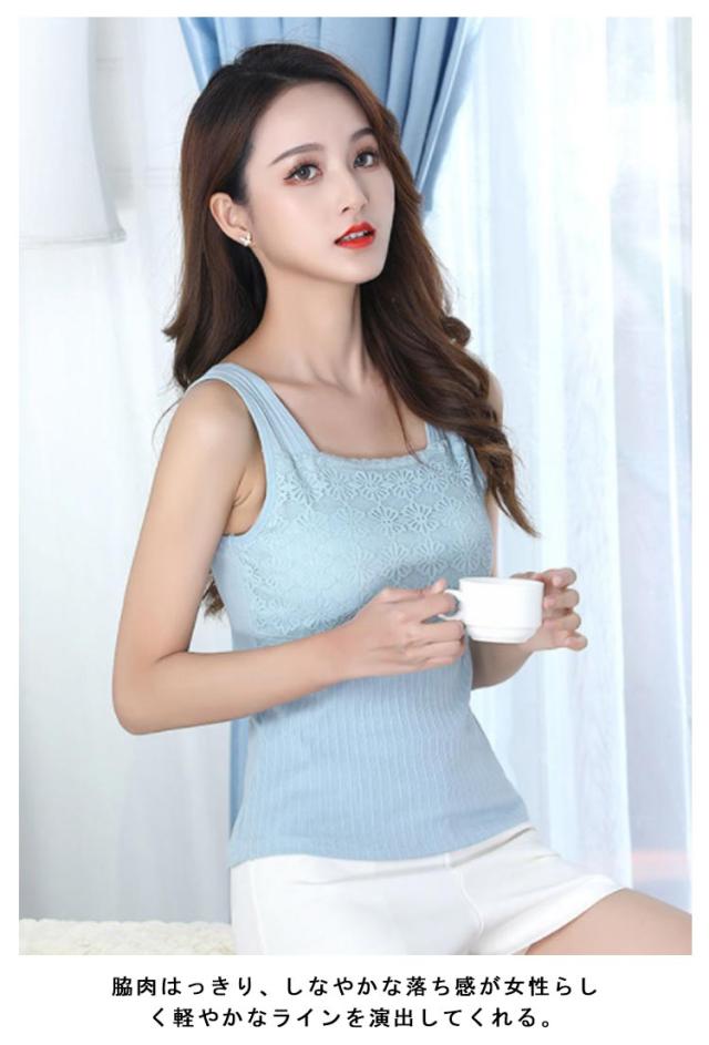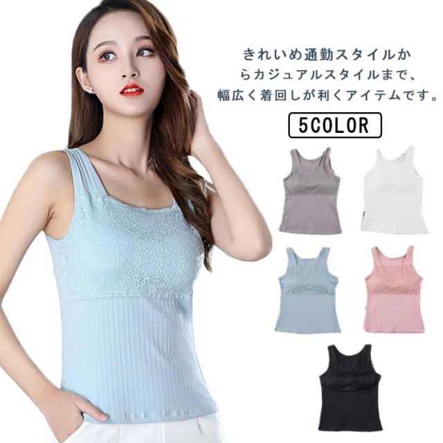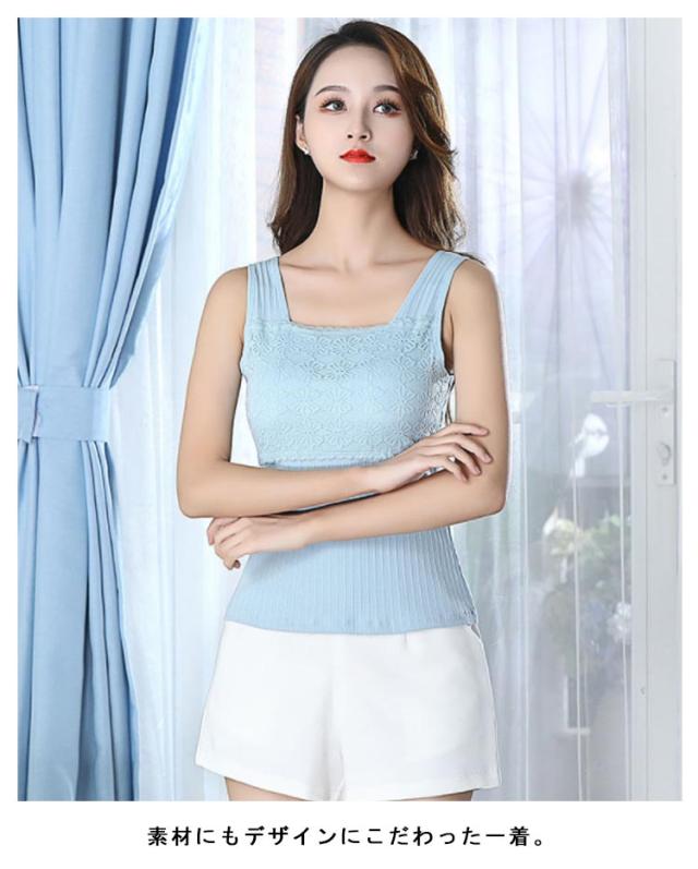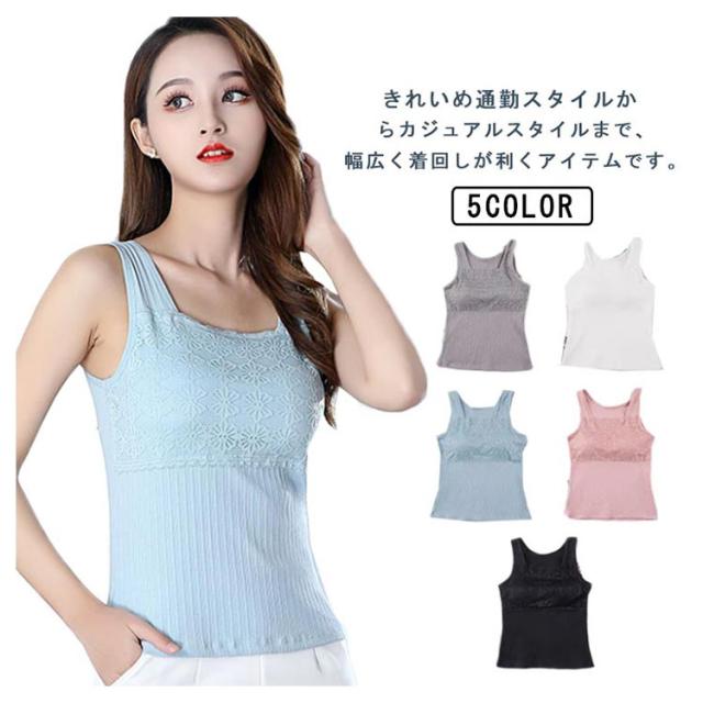 フラワーレース Vネック トップス M ノースリーブ レディース インナーキャミソール チラ見防止 可愛い ルームウェア ナイトブラ ノーワイヤー ヨガウェア おしゃれ 女性 夏 カジュアル タンクトップ