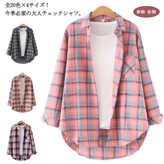 チェック柄 カジュアルシャツ レディース シャツ ネルシャツ 綿 チェックシャツ 大きサイズ ゆったり 秋 トップス ブラウス 春 長袖シャツ 冬 コットン