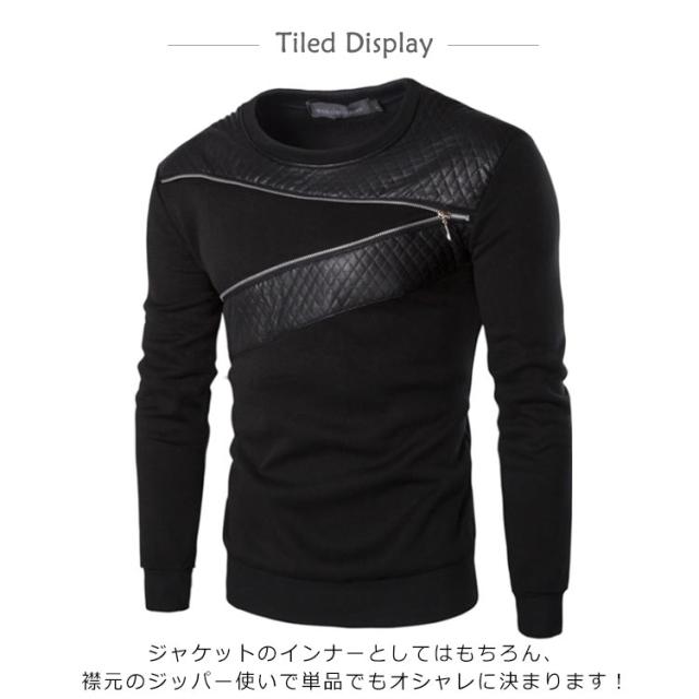 | ジャケットのインナーとしてはもちろん、襟元のジッパー使いで単品でもオシャレに決まります! やや厚手の非常に肌触りの良い生地でヒートテックに負けない防寒性! 着心地も抜群なのでヘヴィロテ間違い無しです! | |