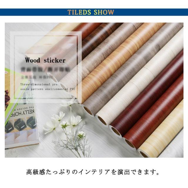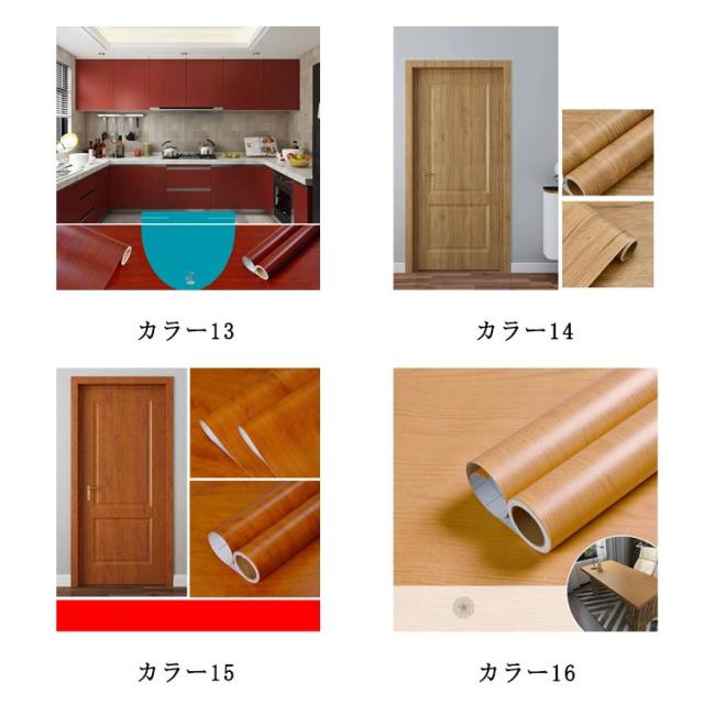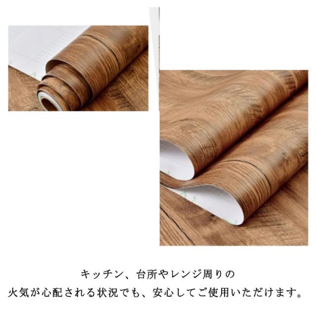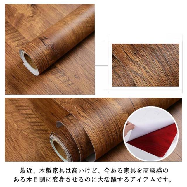 | 木目調シートは裏面がになってるので、好きな場所に貼るだけでOK。 高級感たっぷりのインテリアを演出できます。 最近、木製家具は高いけど、今ある家具を高級感のある木目調に変身させるのに大活躍するアイテムです。 はがせるタイプ、防水性防汚性にも優れ、表面に汚れがつきにくい防汚加工付き、お手入れは濡れタオルで拭き取るだけです。 キッチン、台所やレンジ周りの火気が心配される状況でも、安心してご使用いただけます。 壁紙の上にはもちろん、家具や床にもご使用いただけるので、お気軽にお部屋の模様替えを楽しめます! | |
