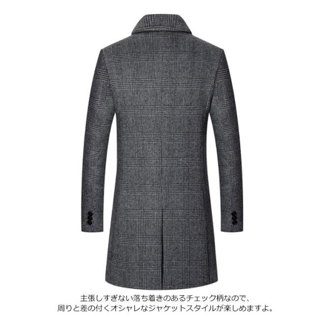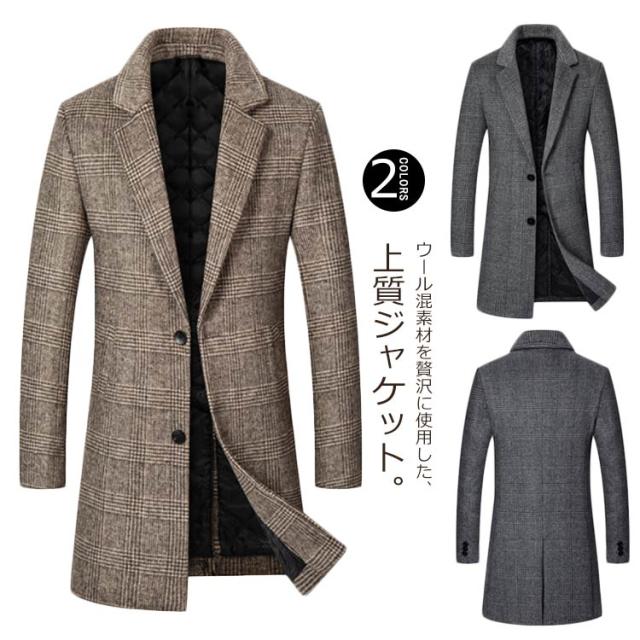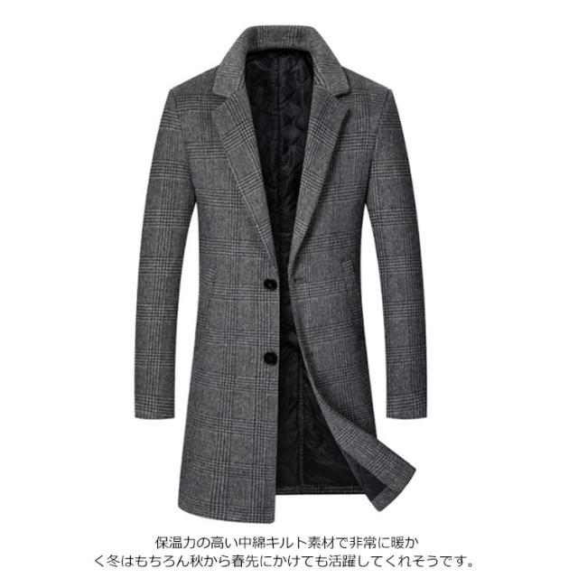チェスターコート メンズ ロングコート アウター 紳士 ビジネスコート 通勤 ウール混 コート ツイード チェック 中綿 暖かい 細身 スリム お洒落 大きいサイズ カジュアル フォーマル 秋 冬 春 冬服 メンズファッション