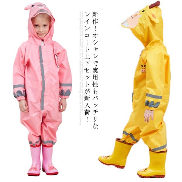 レインコート キッズ カッパ レインコート 上下セット レインパンツ かわいい 通学 レインパーカ 動物服 合羽 撥水加工 雨具 自転車 子供用 誕生日