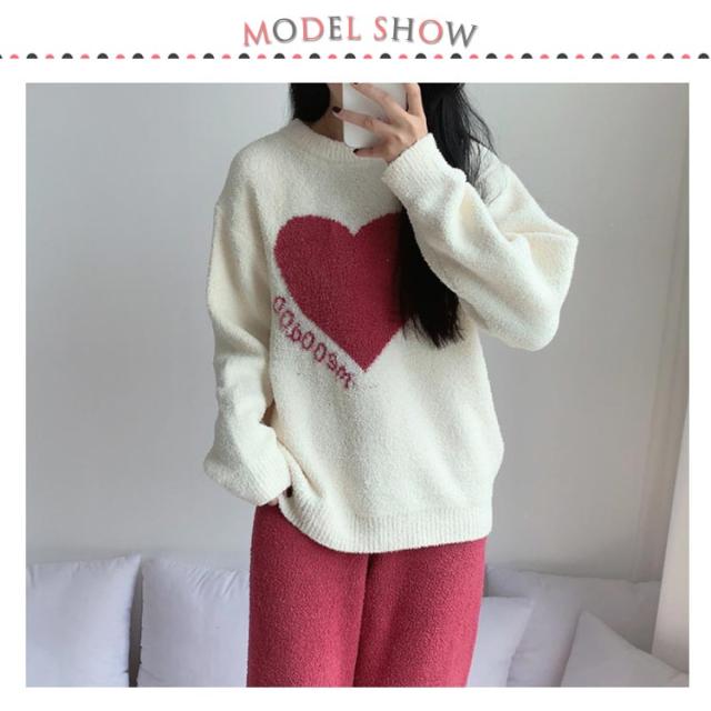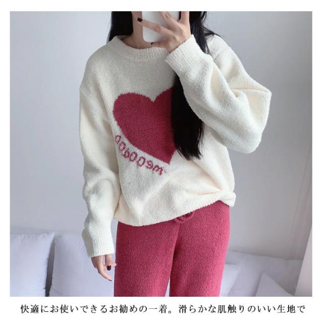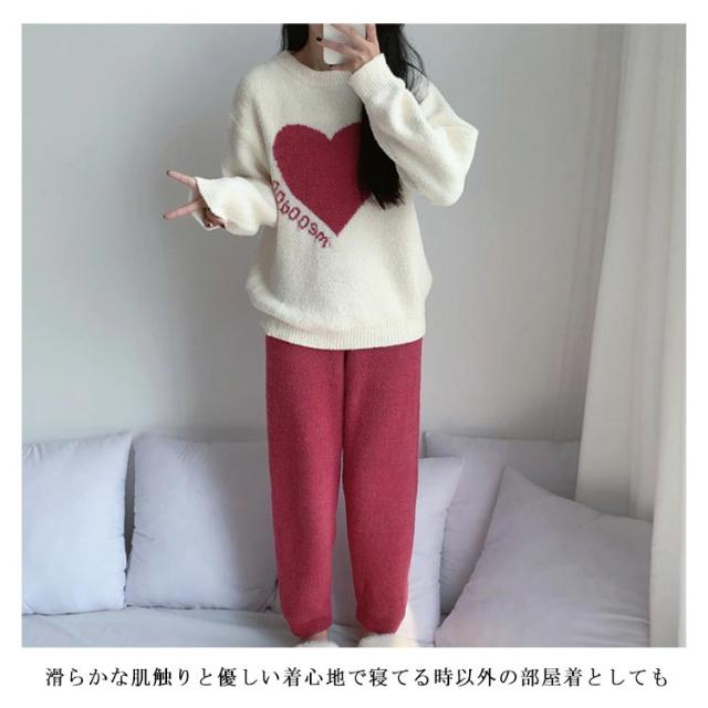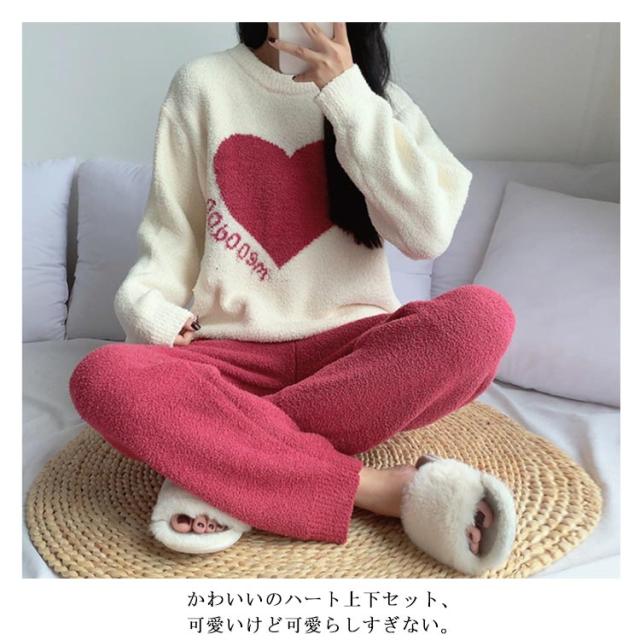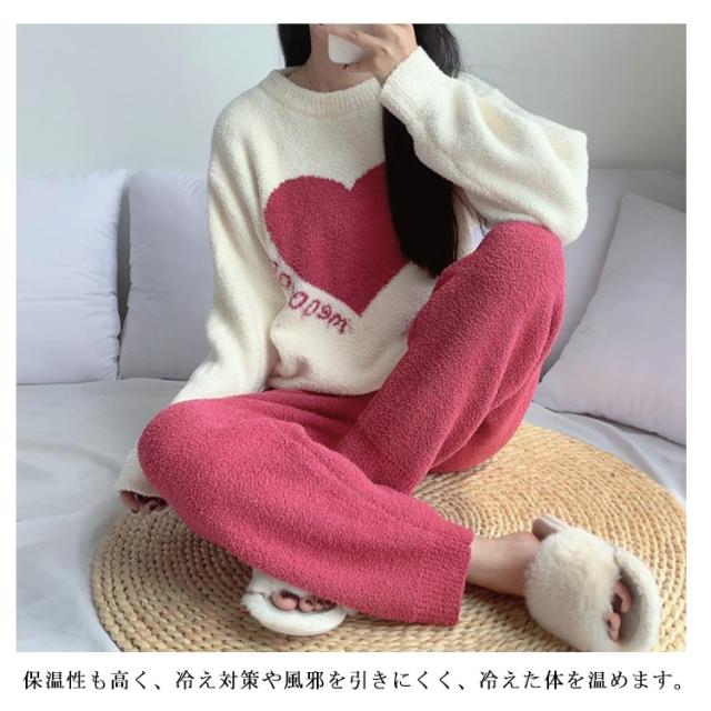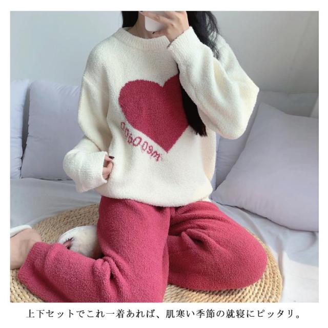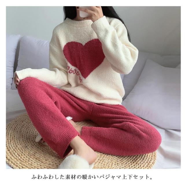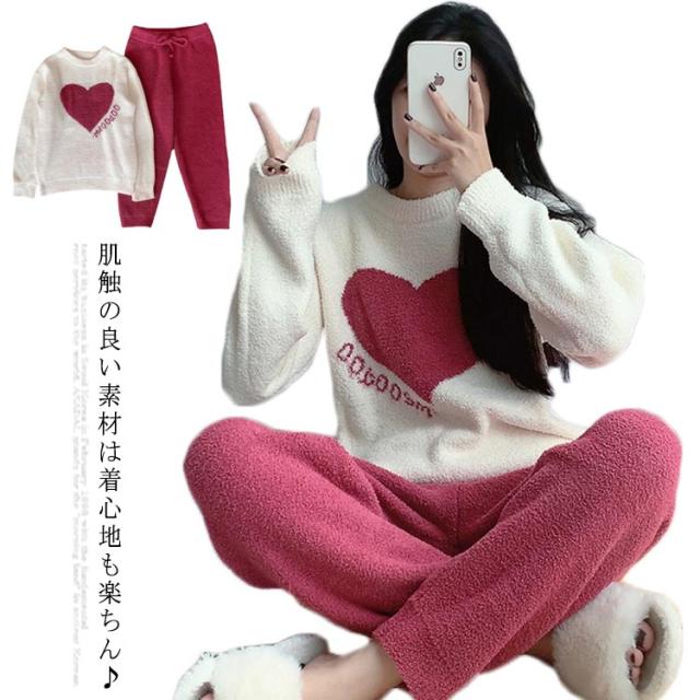 部屋着 ナイトウェア ルームウェア 上下セット パジャマ もこふわ 寝巻き ハート柄 可愛い オシャレ レディース 長袖 SNS人気 着心地 フリース ボアフリース 着痩せ クリスマス 誕生日 プレゼント