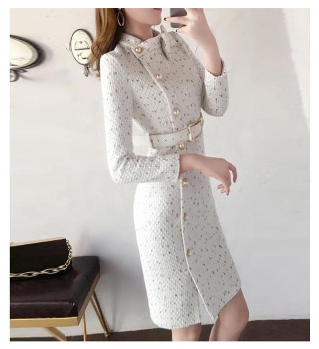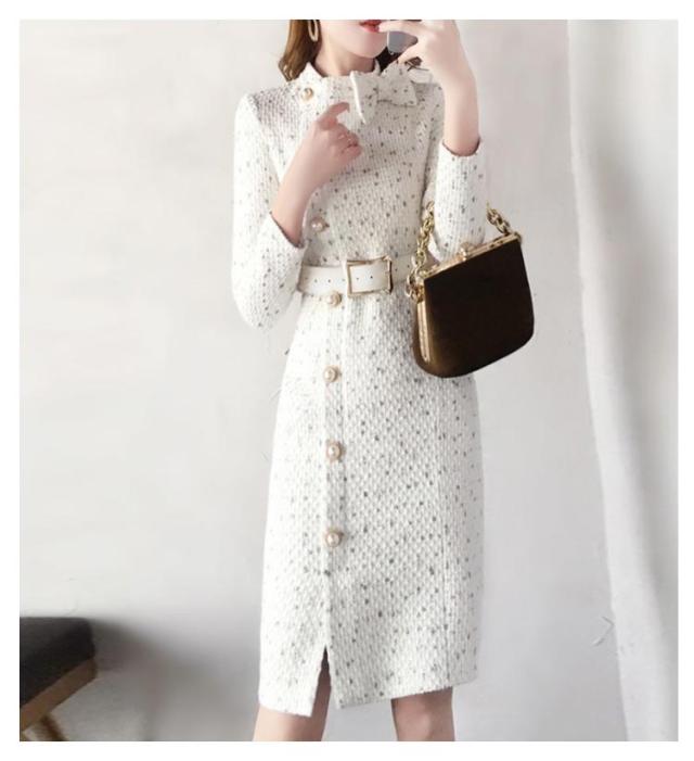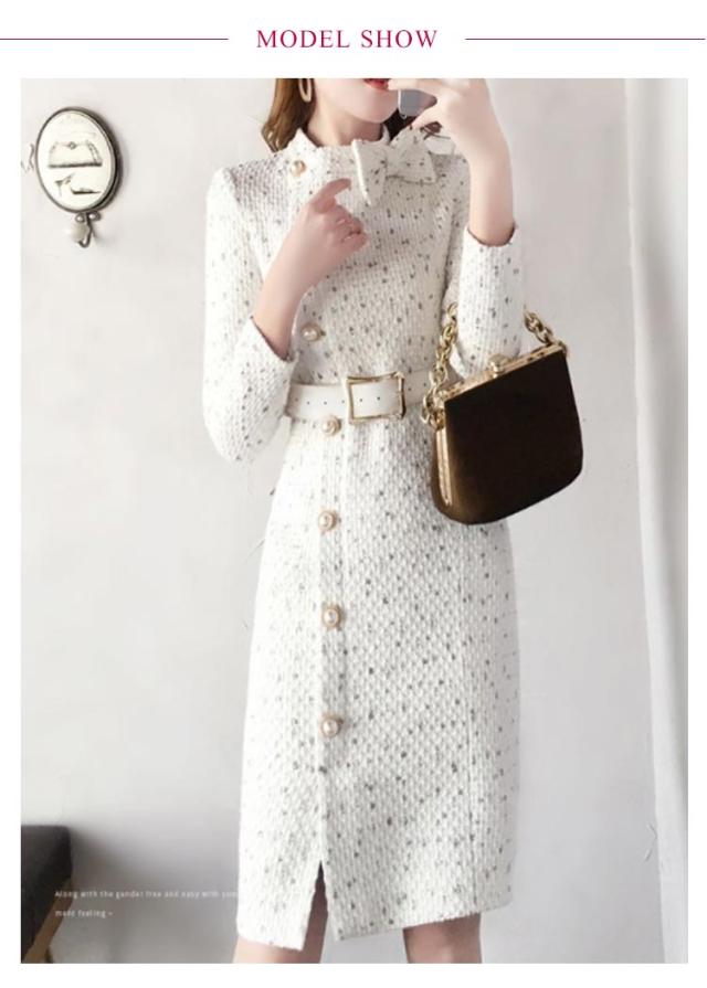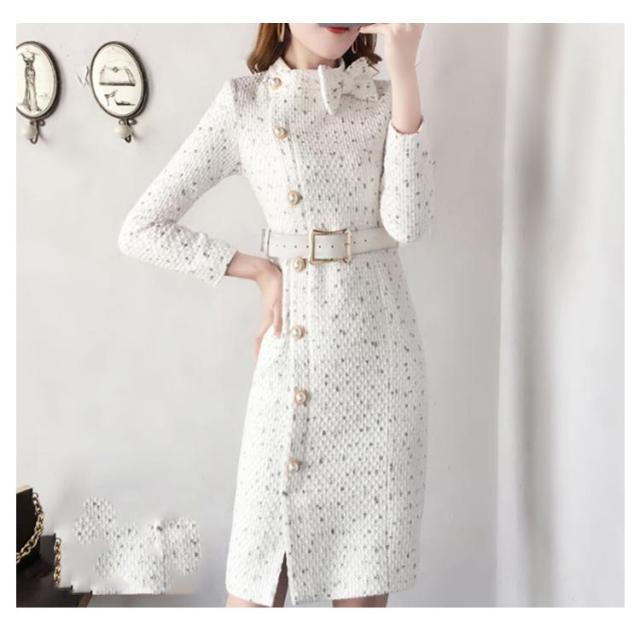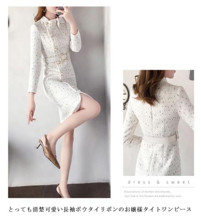 | レディースツイード風のワンピース とっても清楚可愛い長袖ボウタイリボンのお嬢様タイトワンピース | |