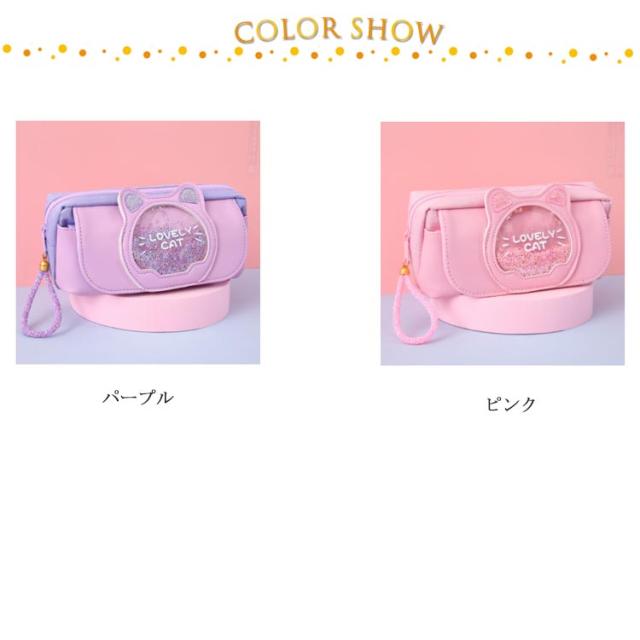 ペンケース かわいい 女の子 小学生 筆入れ ポーチ キラキラ ネコ 中学生 筆箱 入学祝い 誕生日 ギフト 大容量 化粧ポーチ 送料無料 小物 ペン入れ