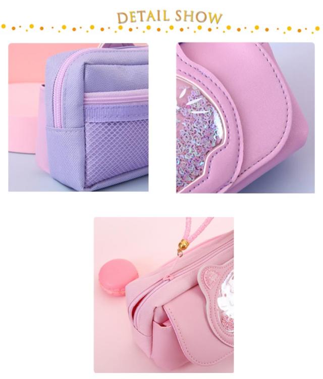 | キラキラスパンコールが内蔵したキャット顔が女の子らしさたっぷり♪ 見た目以上の大容量!たくさんの文房具を収納できます。 三つポケットがあり、ハサミ、修正テープ、消しゴム、ペンなど整理しやすく、ゴチャゴチャせずにケースの中がスッキリ♪ 文房具以外にも、化粧ポーチや小物入れとして利用する方も多く、毎日の通学と通勤に最適です。 とても可愛いデザイン、お嬢様やお友達へのプレゼントとしてもとっても喜ばれます。 | |