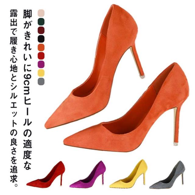 痛くない パンプス ハイヒール 仕事用 美脚 美脚パンプス 結婚式 靴 スエード調 痛くない 通勤 ハイヒール ピンヒール 結婚式 痛くない 大きいサイズ 22-26.5cm エレガント 二次会 ヒール9cm 旅行 参観日 披露宴 オールシーズン ポインテッドトゥ