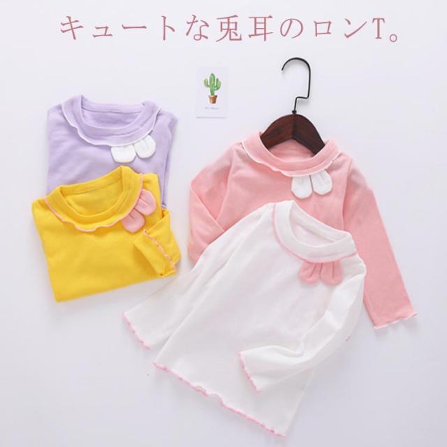 キュート tシャツ 子ども服 キュートな兎耳のロンT インナー 長袖 肌着 キッズ ロンT フリル カットソー メロウ 秋冬 女の子 子供服 小学生 春 伸縮性 アンダーシャツ ストレッチ インナーシャツ