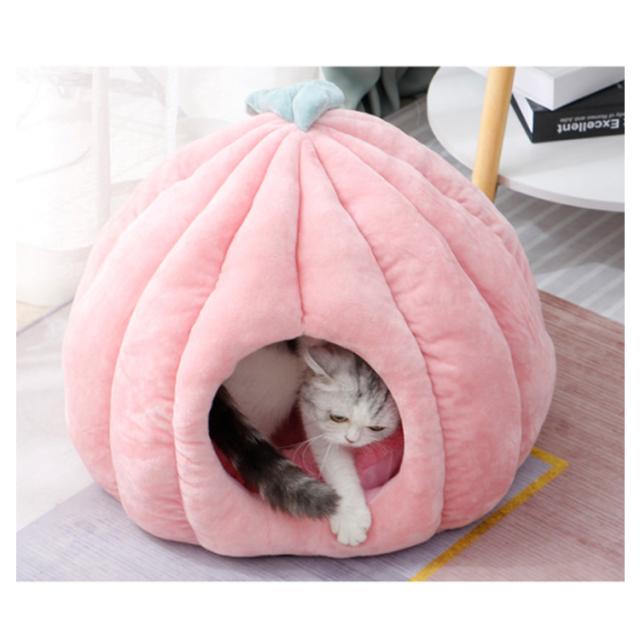猫ハウス 冬 カボチャ クッション付き 猫用ベッド ドーム型 ペットベッド ペットハウス 小型犬 ペット用品 保温防寒 洗える 寒さ対策 滑り止め 快適 柔らかい 暖かい もこもこ ぐっすり眠れる 洗える