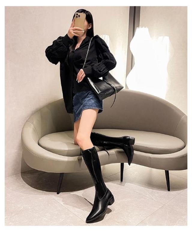 | 見?せ効果抜群、Vカットデザインのロングブーツです。 上質なフェイクレザーを採用して、おしゃれが楽しめる。 安定感のある太めローヒールで歩きやすく、上品な雰囲気を演出します。 | |