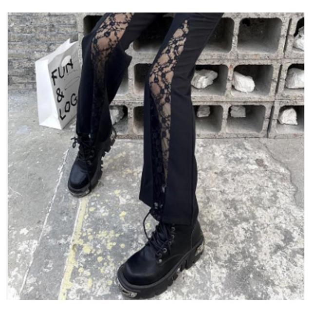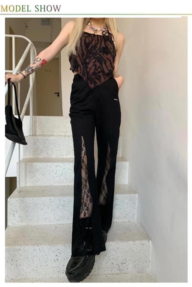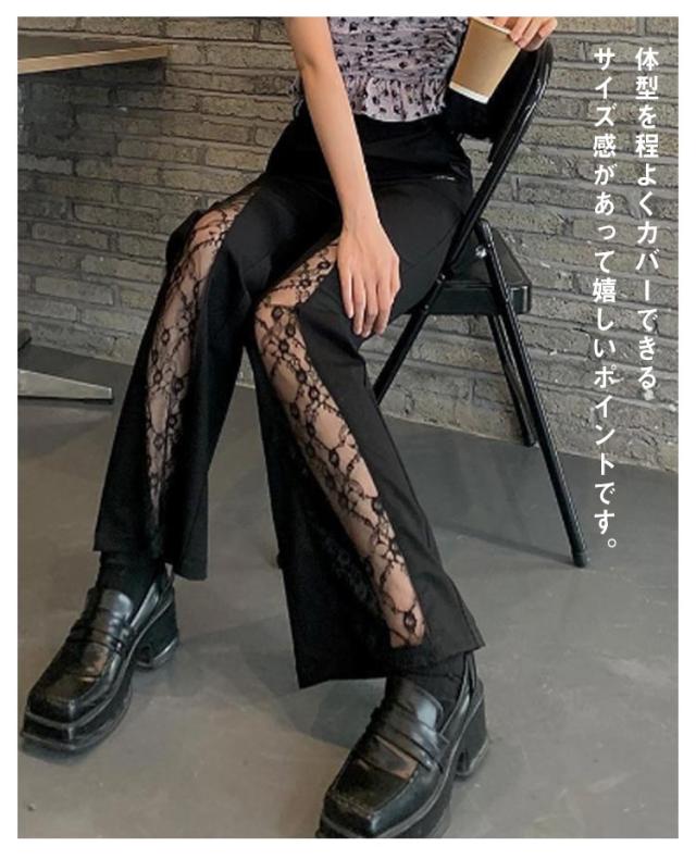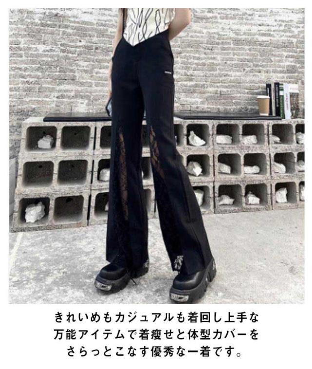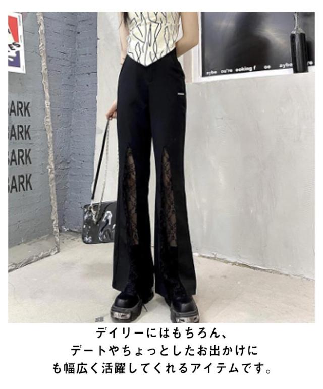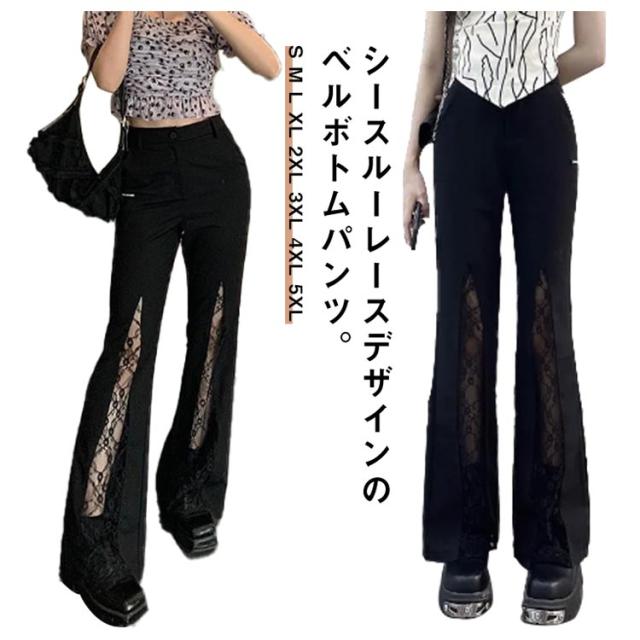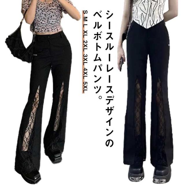 セクシー レディース フレアパンツ ベルボトム 体型カバー 大人 パンツ レースパンツ ロングパンツ 大人 シースルーレース 可愛い 細身 脚長 黒 レディースパンツ カジュアル 美脚パンツ おしゃれ S M L XL 2XL 3XL かわいい