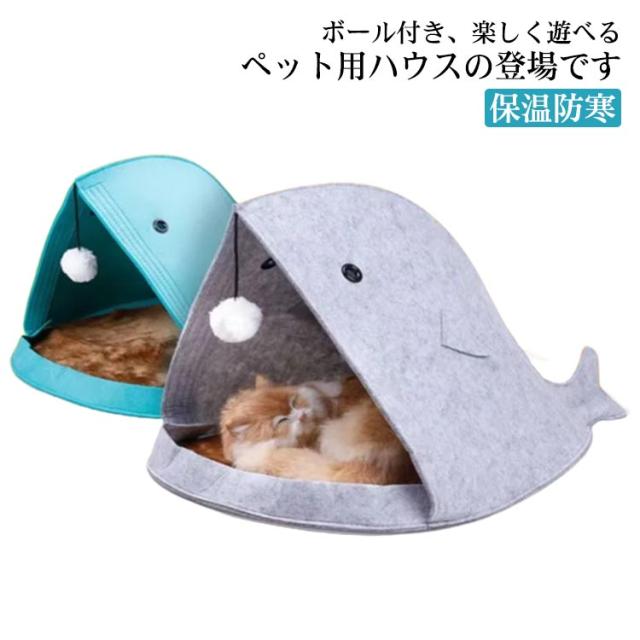 ペットハウス ドーム型 猫ベッド ペット寝袋 犬ベッド 寒さ対策 ボール付き ペット寝袋 フェルト ぐっすり眠れる 犬猫兼用 ペットベッド 保温防寒 洗える 猫 小型犬 おしゃれ 犬小屋 サメ柄