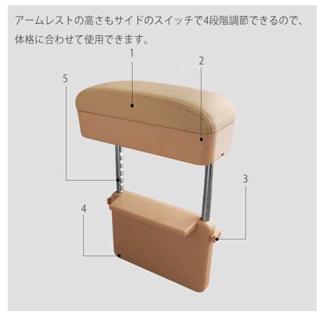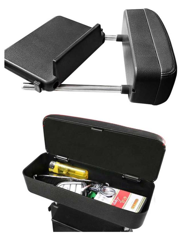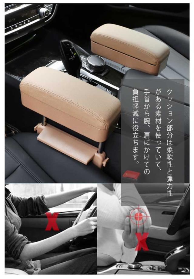 | 2way!便利な収納ボックス付きの車用アームレスト。 小物入れが付いており、運転席まわりをスッキリ整理整頓ができます。 運転席と助手席の間に挟むだけで簡単に後付けができます。 クッション部分は柔軟性と弾力性がある素材を使っていて、手首から腕、肩にかけての負担軽減に役立ちます。 アームレストの高さもサイドのスイッチで4段階調節できるので、体格に合わせて使用できます。 | |