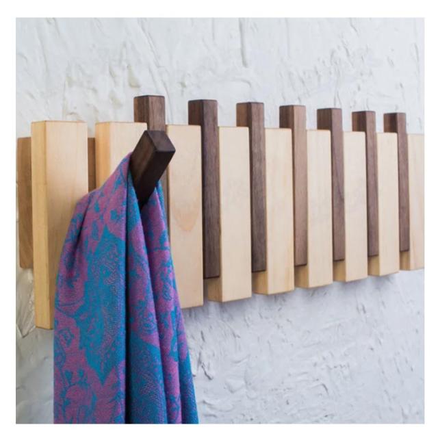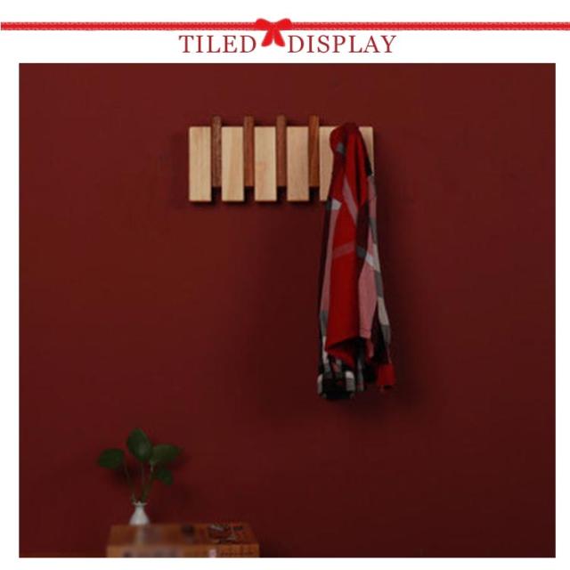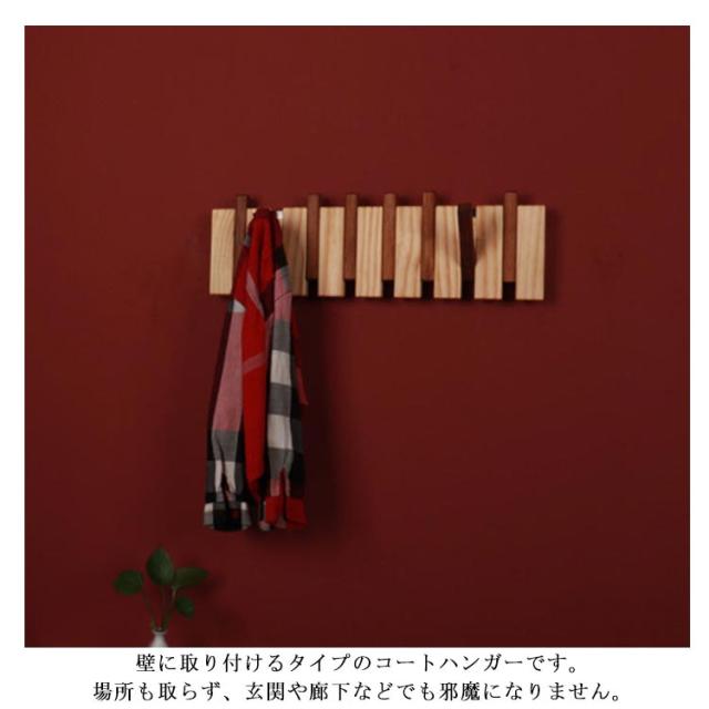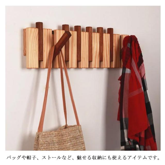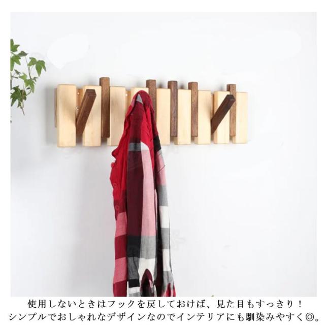 5連フック コートハンガー 34*16*4cm 壁掛けコート ハンガー 壁掛けフック 耐荷重15kg フリップフック ロング ハンガー 収納 フック 壁掛け 北欧 折たたみ おしゃれ インテリア デザイン 家具 木製 木目