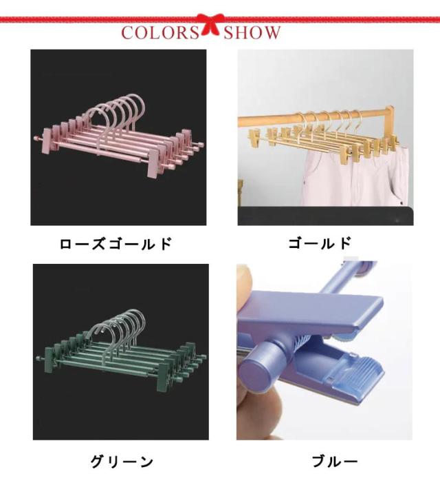 パンツ スカートハンガー ボトムス ゴールドズボンハンガー 滑り止め 20本セット!軽い アルミ スラックス タオル用 金属 スカート 耐用性 調節可能クリップ コンパクト メタル