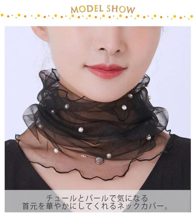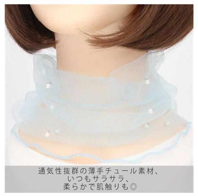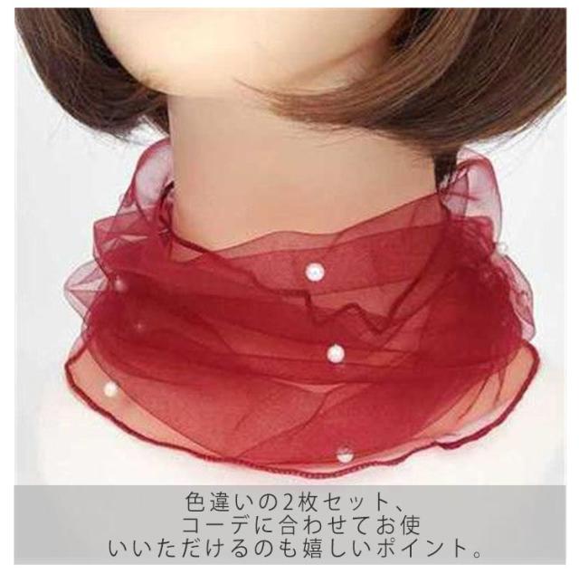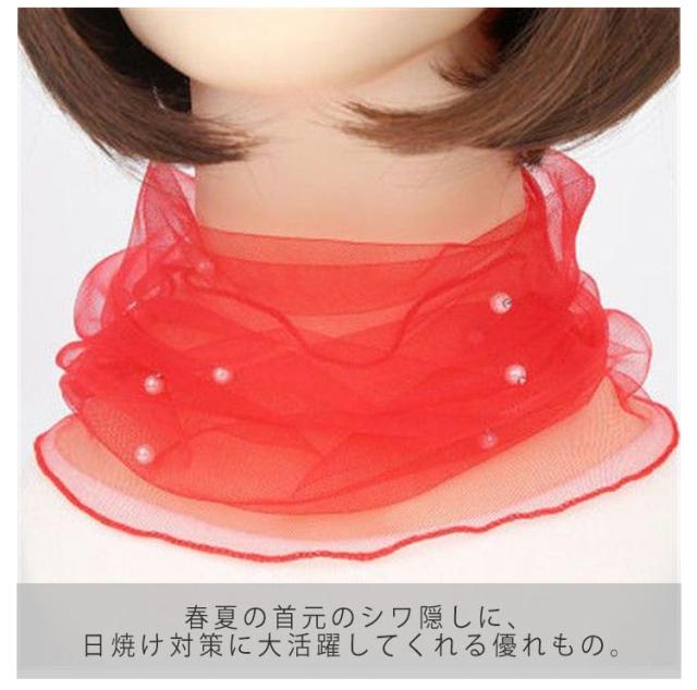 アクセサリー チュール 薄手 パール 送料無料 春夏 ネックカバー 日焼け対策 小物 シワ隠し シアー 目隠し レディース ファッション 2枚セット 60代 ミセスファッション ネックウォーマー 40代50代