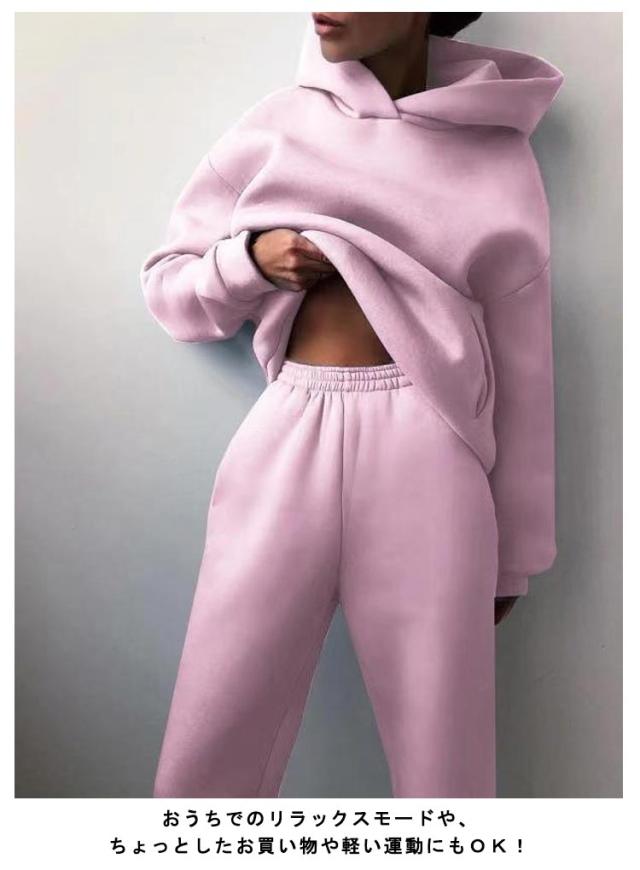 セットアップ レディース パーカー シンプル 秋服 長袖 プルオーバーパーカー スウェットパーカー スウェットパンツ スウェットジョガーパンツ 大人 アウトドア 部屋着 スポーツ フード付き ワンマイルウェア 無地 上下セット カジュアル 春秋 春服 可愛い